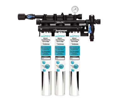 Streamline workflow with the Scotsman AP3-P Water Filtration System, designed specifically for commercial restaurant use. This triple system is perfect for ice makers and beverage equipment, making it an essential addition to any bustling kitchen. With a capacity suitable for cubers over 1300 lb, this filtration system ensures that your ice and beverages are of the highest quality. The AquaPatrol Plus Water Filtration System, cULus and NSF certified, guarantees that your water is free from impurities, providing a clean and refreshing taste. Scotsman, a trusted name in the industry, has packed this system with features that prioritize efficiency and convenience. The AP3-P is easy to install and maintain, allowing you to focus on serving your customers. Enhance the performance of your ice machines and beverage equipment with the Scotsman AP3-P Water Filtration System and deliver exceptional quality to your patrons.