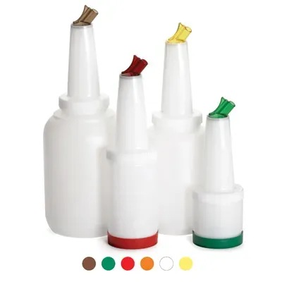 Boost convenience with the Spill-Stop, 1692-0A Drink Bar Mix Pourer Complete Unit. This quart canister is designed for commercial restaurant use, providing a hassle-free solution for mixing and pouring drinks. The non-slip neck ensures a secure grip, while the lid and spout prevent spills and drips. With its color-coded contents, including red, green, orange, yellow, clear, and brown, you can easily identify different mixtures for efficient service. The Spill-Stop Mix Pourer fits perfectly on speed racks, saving valuable space behind the bar. Whether you're serving up cocktails, mocktails, or specialty beverages, this complete unit from Spill-Stop is a must-have tool. Enhance your beverage preparation process and streamline your operations with this reliable and practical Drink Bar Mix Pourer Complete Unit.