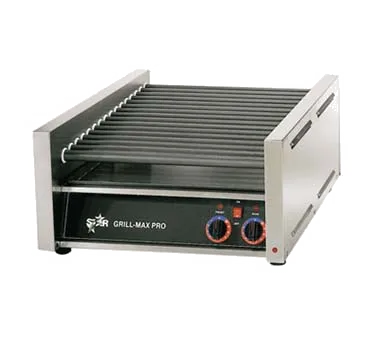 Cook with confidence and flair using the Star, 30ST, Hot Dog Grill. This roller-type grill is perfect for commercial restaurant use, especially in stadiums or venues with stadium seating. With its StalTek coated non-stick rollers, this grill can cook up to 30 hot dogs at a time, ensuring quick and efficient service. The analog controls for the front and rear zones allow for precise temperature adjustments, guaranteeing perfectly cooked hot dogs every time. Made with stainless steel construction, this grill is durable and easy to clean, making it ideal for busy restaurant kitchens. It is cULus and UL EPH Classified, ensuring its safety and quality. With its capacity and reliability, the Star, 30ST, Hot Dog Grill is a must-have for any commercial restaurant looking to serve delicious hot dogs to their customers.