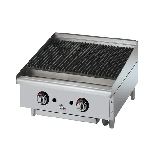 Star-Max radiant and lava rock charbroilers are designed to provide excellent heating and control when preparing a wide variety of products. The units are designed with durability and flexibility in mind with cast iron burners and a control knob for each twelve 12 inch section. The grates have been designed to hold a high capacity of product for maximum efficiency under demanding cooking situations.