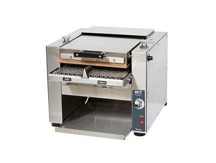 The HCT13S contact toaster seals bread surfaces which provides a crispy texture and keeps sauces from penetrating the bun. The HCT13S features analog controls and a silicone belt.