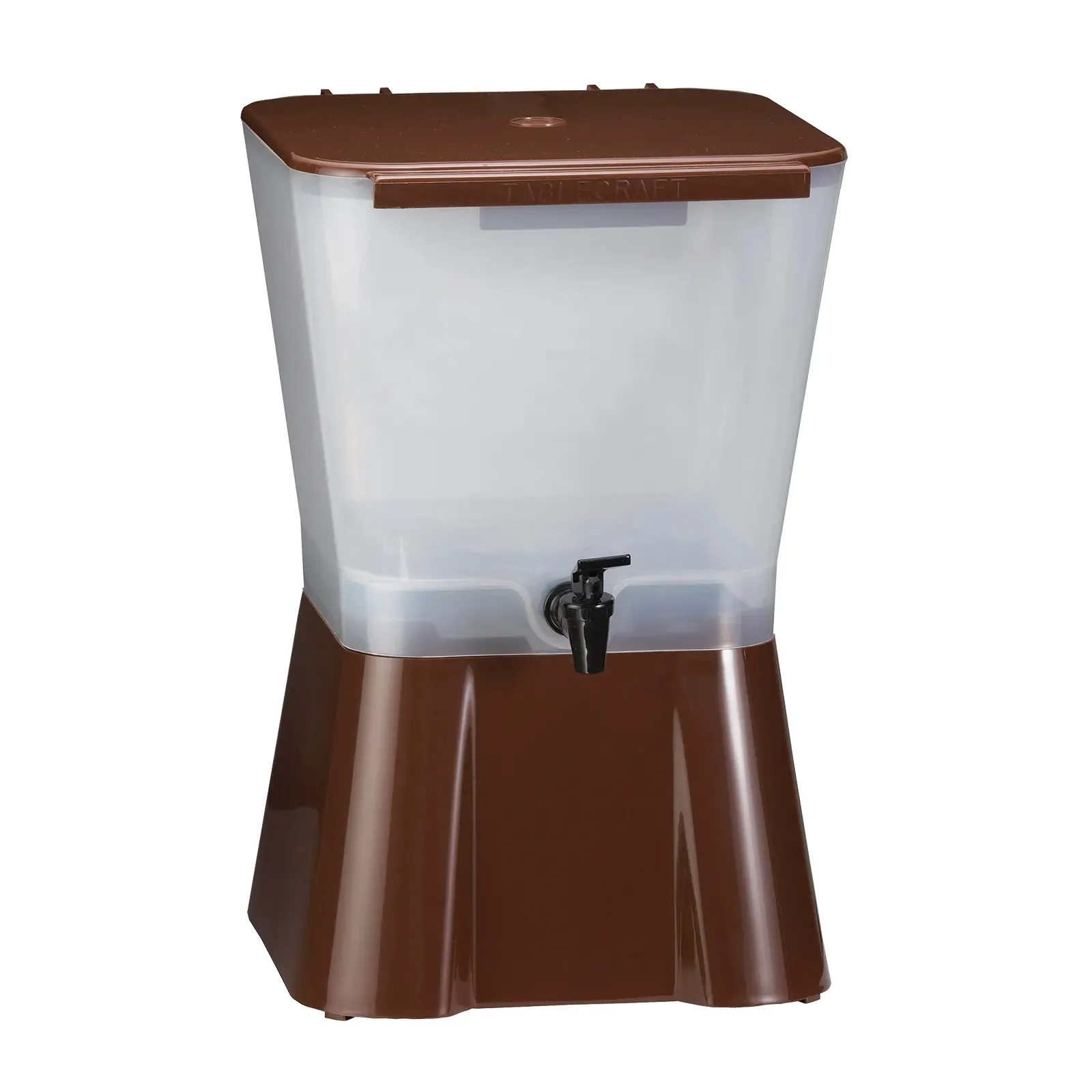 Elevate culinary experiences with the TableCraft Products, 954, Beverage Dispenser, Non-Insulated. This commercial-grade dispenser is designed to meet the demands of busy restaurant environments. With a capacity of 3 gallons, it can effortlessly serve a large number of customers without the need for constant refills. The 7" faucet clearance allows for easy filling of cups and pitchers, ensuring efficient service. Made from FDA-approved polypropylene, this dispenser is dishwasher safe, making cleanup a breeze. The standard Tomlinson faucet guarantees smooth and controlled pouring, preventing spills and waste. Its brown color adds a touch of sophistication to any beverage station. NSF certified, this dispenser meets the highest standards of safety and sanitation. Whether you're serving refreshing iced tea, fruit-infused water, or homemade lemonade, the TableCraft Products, 954, Beverage Dispenser, Non-Insulated is the perfect addition to your commercial restaurant.