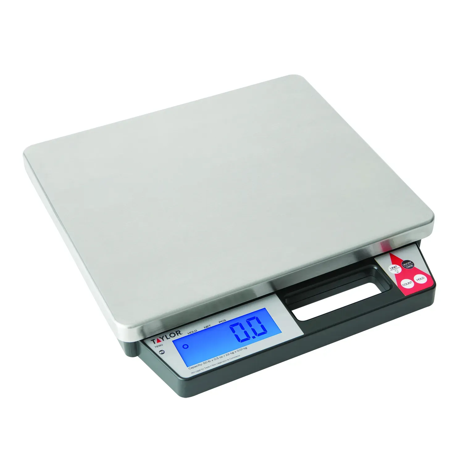 Optimize operations with the Taylor Precision TE50 digital portion control scale. Designed specifically for commercial restaurant use, this scale offers precise measurements and convenient features to streamline your kitchen processes. With a 50lb capacity and 0.5 oz increments, you can accurately portion ingredients for consistent recipes and cost control. The large easy-read 1" LCD display ensures clear visibility, while the tare and hold functions allow for efficient weighing and measuring. The stable weight indicator ensures accuracy, and the built-in handle provides easy transport and storage. Made with a durable ABS plastic body and a rectangular stainless steel platform, this scale is built to withstand the demands of a busy kitchen. Whether you're a small cafe or a large restaurant, the Taylor Precision TE50 digital portion control scale is an essential tool for optimizing your operations and ensuring consistent, high-quality dishes.