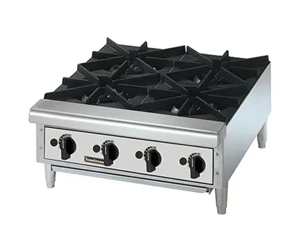 Simplify processes with the Toastmaster TMHP6 Hotplate, Countertop, Gas. This heavy-duty hotplate is designed to meet the demands of a commercial restaurant setting. With six 22,000 BTU burners, it provides ample cooking power to handle high-volume cooking. The manual control allows for precise temperature adjustments, ensuring consistent results every time. The heavy-duty cast iron grates are durable and can withstand constant use, while the stainless steel front and aluminized body add to its longevity. The drip tray collects any excess grease or food particles, making cleaning a breeze. The heavy-duty knobs are easy to grip and control, providing convenience and safety. With 4" adjustable legs, you can easily level the hotplate on any countertop. This hotplate is CSA, AGA, and NSF certified, guaranteeing its quality and safety. Simplify your cooking processes and elevate your restaurant's efficiency with the Toastmaster TMHP6 Hotplate.