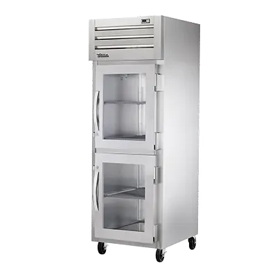 Mobilize your kitchen with the True Manufacturing STA1H-2HG Heated Cabinet, Reach-In. This top-of-the-line commercial appliance is designed to meet the rigorous demands of a busy restaurant kitchen. With its SPEC SERIES construction, this heated cabinet is built to last, featuring a stainless steel front and sides for durability and an aluminum interior for easy cleaning. The two glass half doors with locks provide easy access to your stored items while keeping them secure. The cam-lift hinges ensure smooth operation, and the digital temperature control allows you to easily adjust and monitor the temperature. With three chrome shelves and a spacious interior, you'll have plenty of room to store and organize your food items. The 5" castors make it easy to move the cabinet around your kitchen as needed. Made in the USA and UL EPH Classified, this True Manufacturing heated cabinet is a reliable and efficient addition to any commercial restaurant.