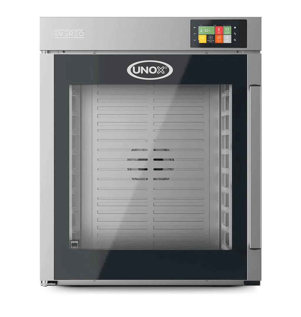 The Unox Evereo 600 features an intuitive touch screen control panel, making it simple to operate and program. With MULTI.Time technology, you can set up to 10 different timers, ensuring precise cooking and preservation for up to 200 different programs. This flexibility allows you to maintain the quality and freshness of your food, reducing waste and enhancing efficiency.