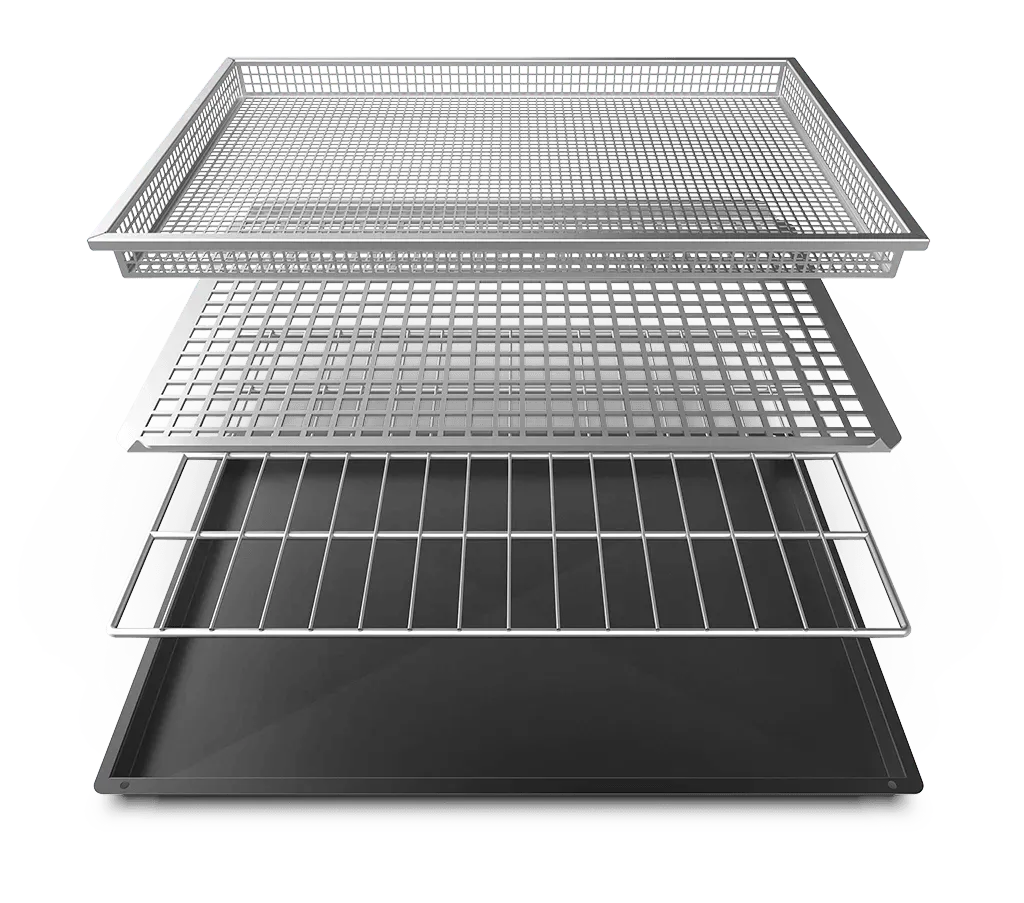 The Cooking Essentials Start-Up Kit includes three 18" x 26" CHROMO.GRIDS (GRP560), which are perfect for achieving even cooking and optimal heat distribution. These grids are essential for any chef looking to maximize the performance of their ChefTop MIND.Maps Plus oven.