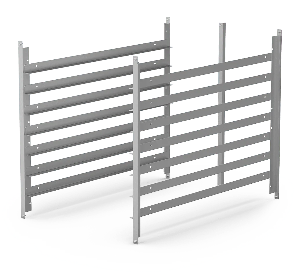 The Unox Lateral Support for ChefTop MIND.Maps Plus boasts an impressive capacity, accommodating up to (7) 18x26" full-size pans or (14) hotel-size pans. This flexibility ensures you can handle a variety of cooking tasks simultaneously, making it ideal for high-volume restaurant settings. The 2-3/8" spacing between supports provides optimal airflow and even cooking, ensuring your dishes are prepared to perfection every time.