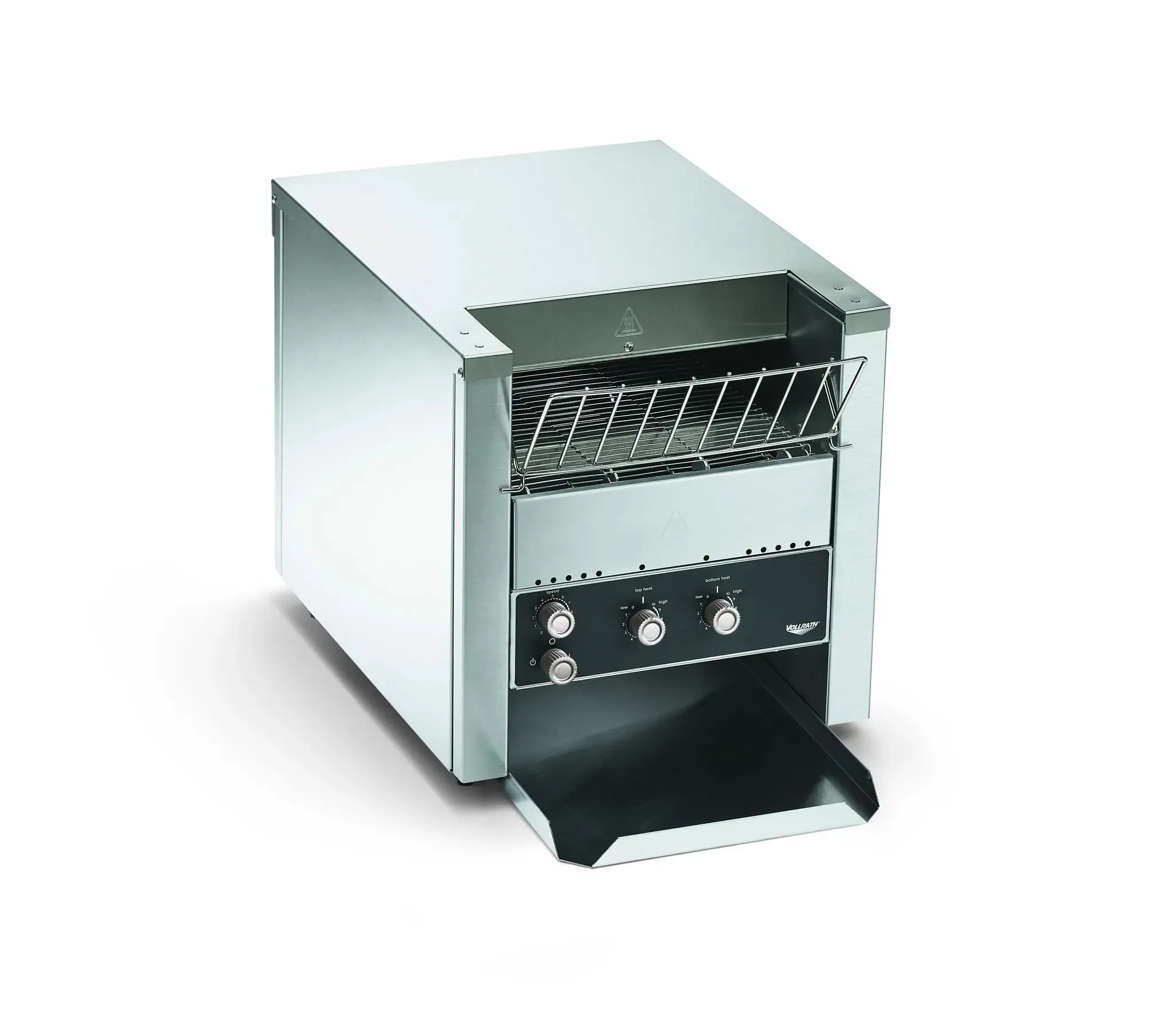This Vollrath® JT2H bread conveyor toaster is consistent, reliable and energy-efficient. Powerful quartz heating elements respond quickly, while forced convection ensures consistent toasting. The variable-speed control and variable top and bottom heat controls help you achieve desired results. Standby mode reduces energy use up to 75 percent during slow periods and quickly returns the unit to full power when needed. The 3-inch product opening fits a variety of items, making this toaster ideal for bread, buns, bagels and more. The 10½-inch-wide conveyor can fit up to 550 items per hour. The durable stainless and aluminized steel exterior is built to last, and heavy-duty legs allow leveling adjustments to provide maximum stability on any countertop.