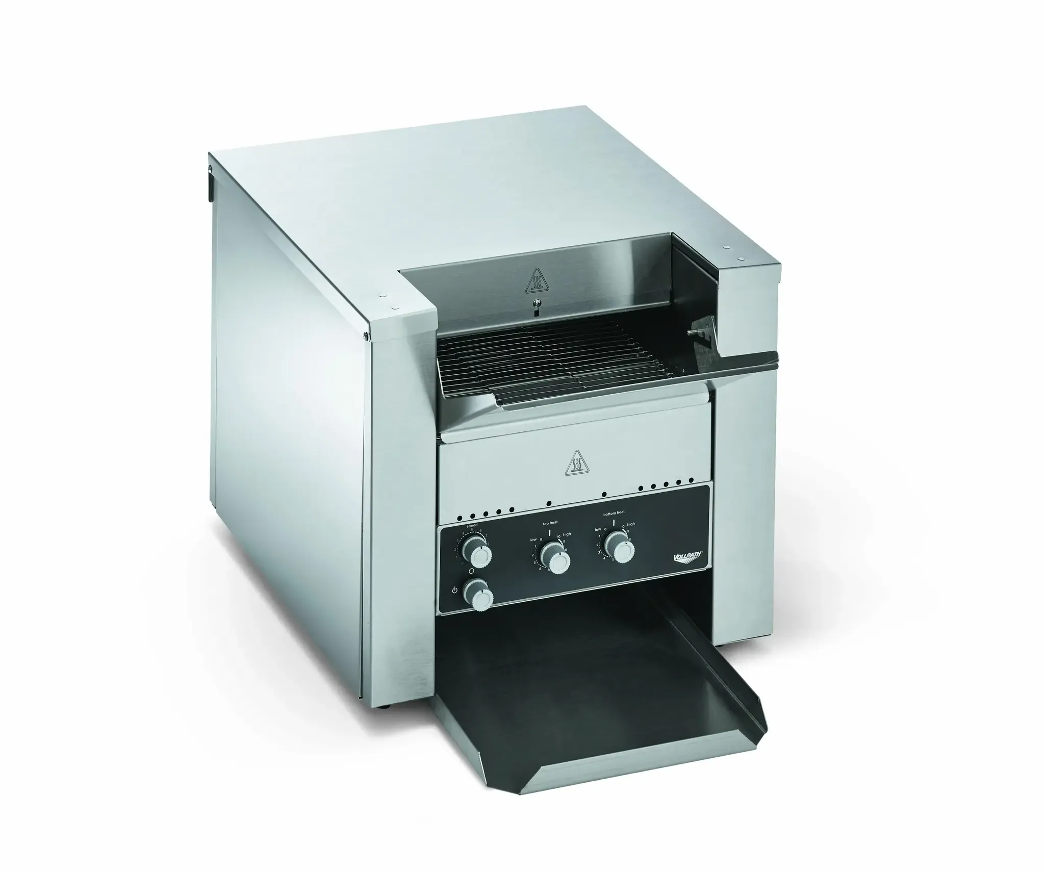 Double your capabilities and increase versatility with the convertible conveyor toaster by Vollrath, which converts from a standard toaster to a pass-through toaster easily and efficiently. Powerful quartz heating elements respond quickly, while forced convection ensures consistent toasting. The variable-speed control and variable top and bottom heat controls help you achieve desired results. Standby mode reduces energy use up to 75 percent during slow periods and quickly returns the unit to full power when needed. The adjustable 1 ½- to 3-inch product opening fits a variety of items, making this toaster ideal for bread, buns, bagels and more. This convertible conveyor toaster fits up to 300 items per hour, and the convertible design helps you save space without sacrificing quality.
