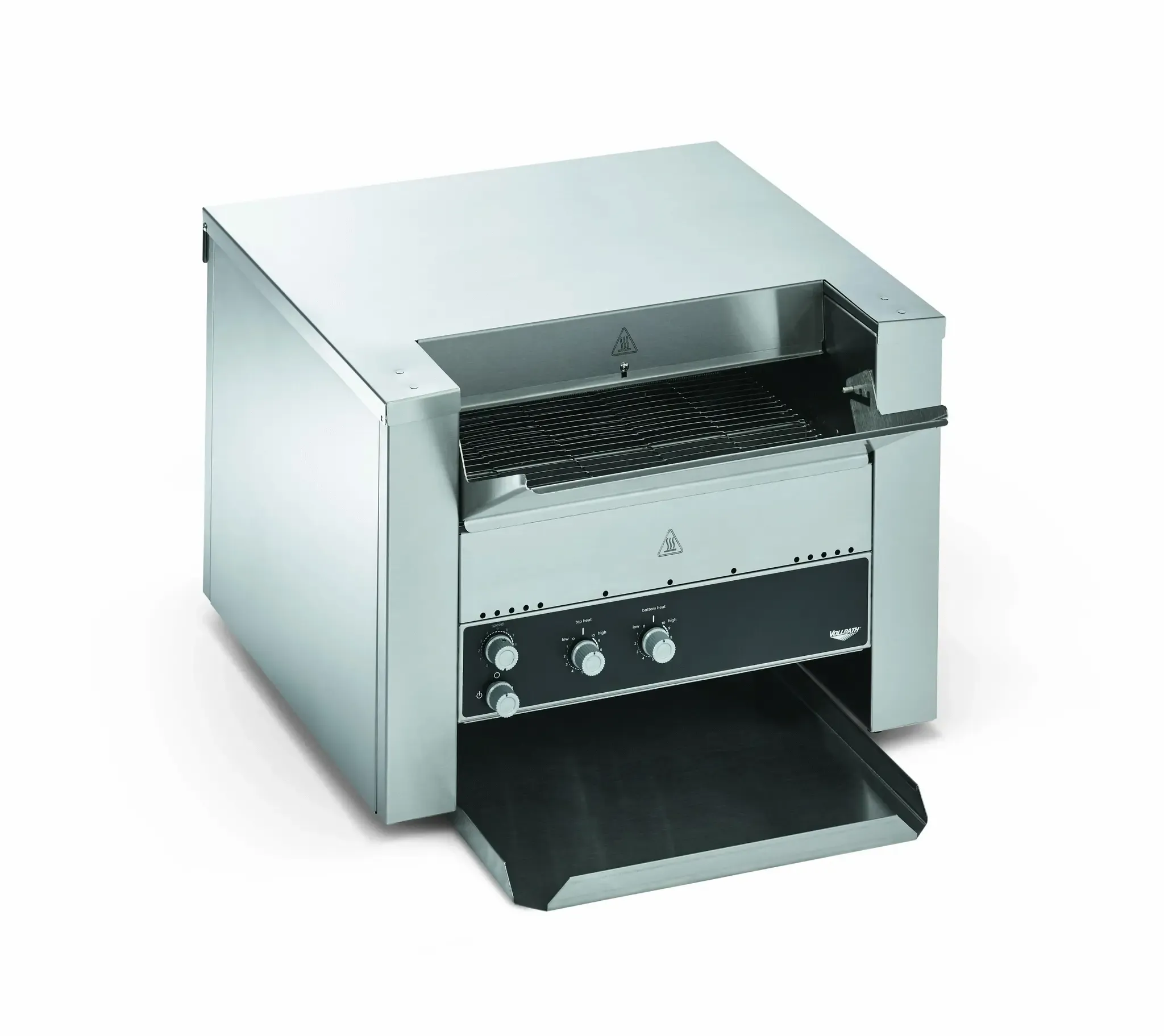 Double your capabilities and increase versatility with the convertible conveyor toaster by Vollrath, which converts from a standard toaster to a pass-through toaster easily and efficiently. Powerful quartz heating elements respond quickly, while forced convection ensures consistent toasting. The variable-speed control and variable top and bottom heat controls help you achieve desired results. Standby mode reduces energy use up to 75 percent during slow periods and quickly returns the unit to full power when needed. The adjustable 1 ½- to 3-inch product opening fits a variety of items, making this toaster ideal for bread, buns, bagels and more. This convertible conveyor toaster fits up to 900 items per hour, and the convertible design helps you save space without sacrificing quality.