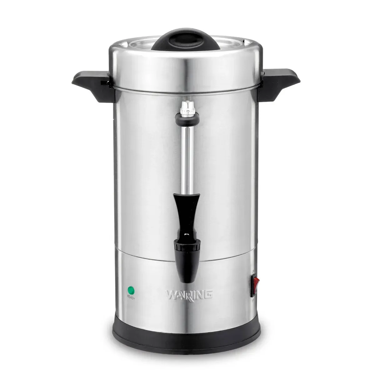 Unleash your inner chef with the Waring WCU30 Coffee Maker / Brewer Urn. This high-quality coffee urn from Waring is perfect for commercial restaurant use. With a capacity of 30 5 oz. cups, it can easily cater to large groups of customers. The dual heater system ensures that your coffee stays hot and delicious, while the boil dry protection feature prevents any accidents. The power on and ready indicator lights make it easy to know when your coffee is ready to serve. The brew level sightglass allows you to monitor the coffee level, ensuring that you never run out. The cool-touch dripless pour spout and stay cool handles make serving safe and easy. The brushed stainless steel housing adds a touch of elegance to any restaurant setting. Trust Waring to deliver exceptional quality and performance with the WCU30 Coffee Maker / Brewer Urn.
