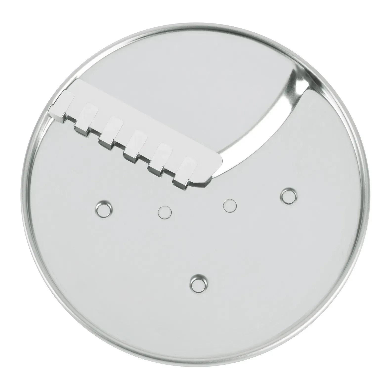 Elevate your cuisine with the Waring WFP120 Food Processor Disc Plate Slicing. This high-quality slicing disc plate is a must-have for any commercial restaurant. Designed by Waring, a trusted name in the industry, this disc plate is perfect for slicing fruits, vegetables, and more with precision and ease. The medium square julienne disc creates uniform 1/8" x 1/8" slices, measuring 3x3mm. Whether you're preparing salads, stir-fries, or garnishes, this disc plate will save you time and effort in the kitchen. With its durable construction and reliable performance, it is built to withstand the demands of a busy restaurant kitchen. Upgrade your food preparation process and achieve consistent, professional results with this essential tool.