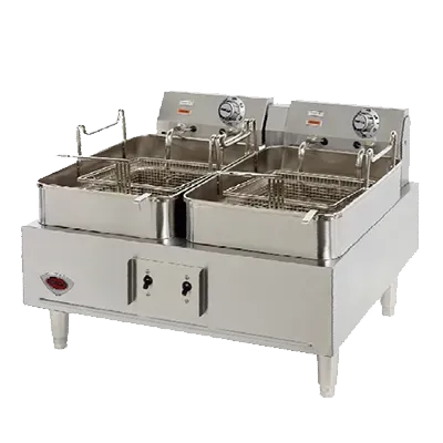Equip your commercial kitchen with the Wells F-30 Fryer, Electric, Countertop, Split Pot. This high-quality fryer is designed to meet the demands of a busy restaurant kitchen. With its dual fry pot configuration, each with a 15 lb. capacity, you can fry large quantities of food simultaneously, increasing efficiency and reducing wait times. The thermostatic controls allow for precise temperature adjustments, ensuring consistent and delicious results every time. The tubular elements provide quick heat-up and recovery times, allowing you to keep up with high-volume orders. The stainless steel fry pot, front, top, and sides make this fryer durable and easy to clean, while the 4" adjustable legs provide stability and flexibility in any kitchen layout. NSF, UL, and CSA certifications guarantee the safety and reliability of this fryer. Upgrade your kitchen equipment with the Wells F-30 Fryer and experience enhanced productivity and customer satisfaction.