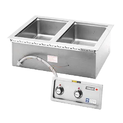 Kitchen innovation at its best, the Wells MOD-200DM Hot Food Well Unit is a must-have for any commercial restaurant. This top-mount, built-in electric food warmer is designed to keep your dishes at the perfect temperature, ensuring that your customers always enjoy a hot and delicious meal. With two 12" x 20" openings and manifold drains with one valve, this unit offers versatile wet/dry operation to accommodate a variety of food items. The infinite controls allow for precise temperature adjustments, while the stainless steel interior and insulated aluminum steel housing ensure durability and efficient heat retention. Whether you're serving soups, sauces, or sides, this Wells Hot Food Well Unit is the ideal solution for keeping your food fresh and appetizing. Trust Wells, a reputable vendor known for their high-quality kitchen equipment, and elevate your restaurant's food service with this exceptional product.