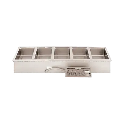 Unleash your kitchen's potential with the Wells MOD-500TDM/AF Hot Food Well Unit. This top-mount, built-in electric food warmer is designed to meet the demands of a busy commercial restaurant. With five 12" x 20" openings and manifold drains with one valve, this unit allows for efficient wet or dry operation. The double control panel and thermostatic control ensure precise temperature regulation, while the stainless steel interior and insulated aluminum steel housing provide durability and heat retention. Whether you need to keep soups, sauces, or other hot dishes at the perfect serving temperature, this Wells Hot Food Well Unit has got you covered. It is cULus certified, guaranteeing its safety and reliability. Upgrade your kitchen with the Wells MOD-500TDM/AF and experience enhanced efficiency and productivity.