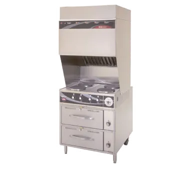Equip your commercial kitchen with the Wells WV-4HFRW Range, Ventless, Electric. This versatile and efficient cooking equipment is a must-have for any restaurant. With its four French plates and thermostatic controls, you can easily cook a variety of dishes to perfection. The self-contained hood system ensures that your kitchen stays clean and free from smoke and odors. Made with stainless steel construction, this range is durable and easy to clean, making it ideal for busy commercial kitchens. The RW-26 drawer warmer base provides additional storage space for keeping your food warm and ready to serve. The front legs and rear casters make it easy to move and position the range wherever you need it. This cUL-certified range is a reliable and safe choice for your restaurant. Don't forget to stock up on replacement filters, including the pre-filter and HEPA charcoal filter pack, to keep your range running smoothly. Upgrade your kitchen with the Wells WV-4HFRW Range, Ventless, Electric.