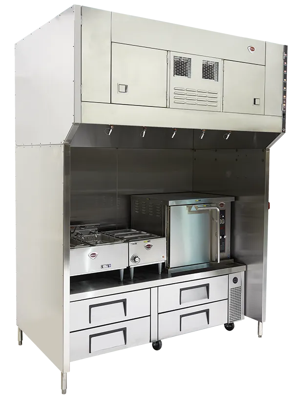Wells WVU-72 Universal Ventless Hood is Certified Type-1 compliant, UL710B approved recirculation hood system and feature completely self-contained 3-stage air filtration and fire-suppression. It does not require venting outside making it possible to cook in nontraditional locations or when traditional Type-1 hoods and ductwork are impractical, restricted, or too expensive. Operators may use electric cooking equipment under the hood. Completely self-contained ANSUL® R-102 system, airflow is 800 CFM, fits through a 36" wide door opening, airflow sensors, and is movable making them ideal for leased spaces. Up to 72" cooking zone for approved electric appliances, 208/240V