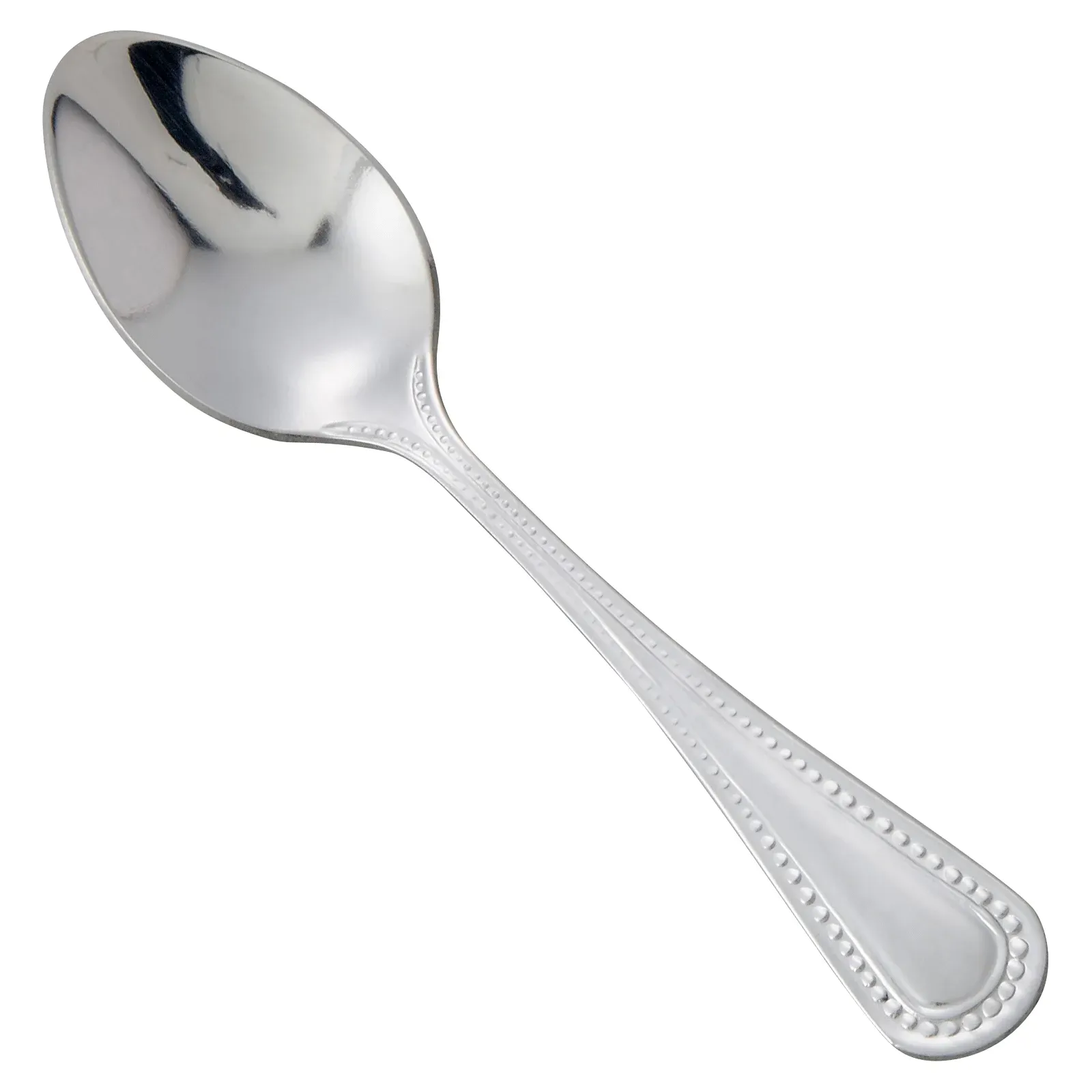Durable and reliable with a touch of elegance, the Winco Demitasse Spoon is an essential addition to any restaurant's cutlery collection. Crafted from 4-34.180 stainless steel, this heavy-weight spoon boasts a mirror finish that adds a sophisticated shine to your table settings. The Demitasse Spoon is designed to withstand the rigors of daily use while maintaining its pristine appearance, making it perfect for high-traffic dining establishments. The Winco Demitasse Spoon features a unique dotted design that not only enhances its aesthetic appeal but also provides a comfortable grip for your patrons. Measuring at an ideal size, this spoon is perfect for serving espresso, desserts, and other small portions, ensuring a delightful dining experience for your guests. While the model number 0005-09 may not be immediately relevant to your customers, it signifies the quality and reliability that Winco consistently delivers. This demitasse spoon is a testament to Winco's commitment to providing durable and stylish cutlery that meets the high standards of the restaurant industry. Incorporating the Winco Demitasse Spoon into your tableware collection will elevate your restaurant's presentation and functionality. Its heavy-weight construction and mirror finish make it a standout piece that complements any dining setting, from casual cafes to upscale eateries. Choose the Winco Demitasse Spoon for a blend of durability, style, and practicality that your restaurant deserves.
