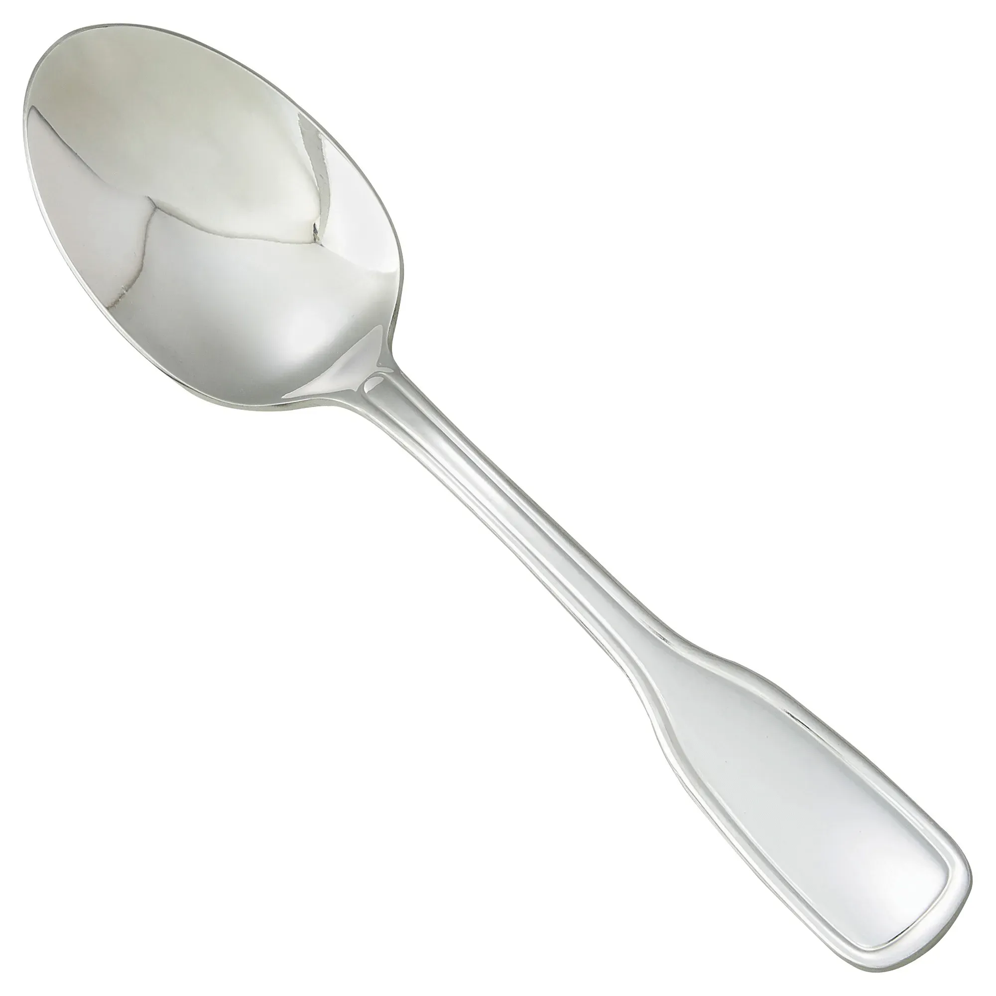 The ultimate tool for gourmet cooking is the Winco Oxford Dinner Spoon. Crafted with precision and elegance, this dinner spoon is designed to elevate your dining experience. Made from 18/8 stainless steel, the Winco Oxford Dinner Spoon boasts an extra heavy weight, ensuring durability and a premium feel in every use. Its mirror finish adds a touch of sophistication, making it a perfect fit for any upscale restaurant setting. Measuring 7-3/8 inches, the Winco Oxford Dinner Spoon is the ideal size for a variety of dining needs, from enjoying a hearty soup to savoring a delectable dessert. The high-quality stainless steel construction not only provides a sleek and polished appearance but also ensures resistance to rust and corrosion, maintaining its pristine condition even with frequent use. The ergonomic design of the Winco Oxford Dinner Spoon offers a comfortable grip, enhancing the dining experience for your guests. Its balanced weight distribution ensures ease of use, making it a favorite among both diners and restaurant staff. The model 0033-03 signifies the meticulous craftsmanship and attention to detail that Winco is renowned for, adding a layer of trust and reliability to your cutlery collection. Incorporating the Winco Oxford Dinner Spoon into your restaurant's table setting will undoubtedly impress your patrons and complement your culinary creations. Its blend of functionality, durability, and aesthetic appeal makes it an indispensable addition to any fine dining establishment. Elevate your service with the Winco Oxford Dinner Spoon and let your guests indulge in a truly refined dining experience.