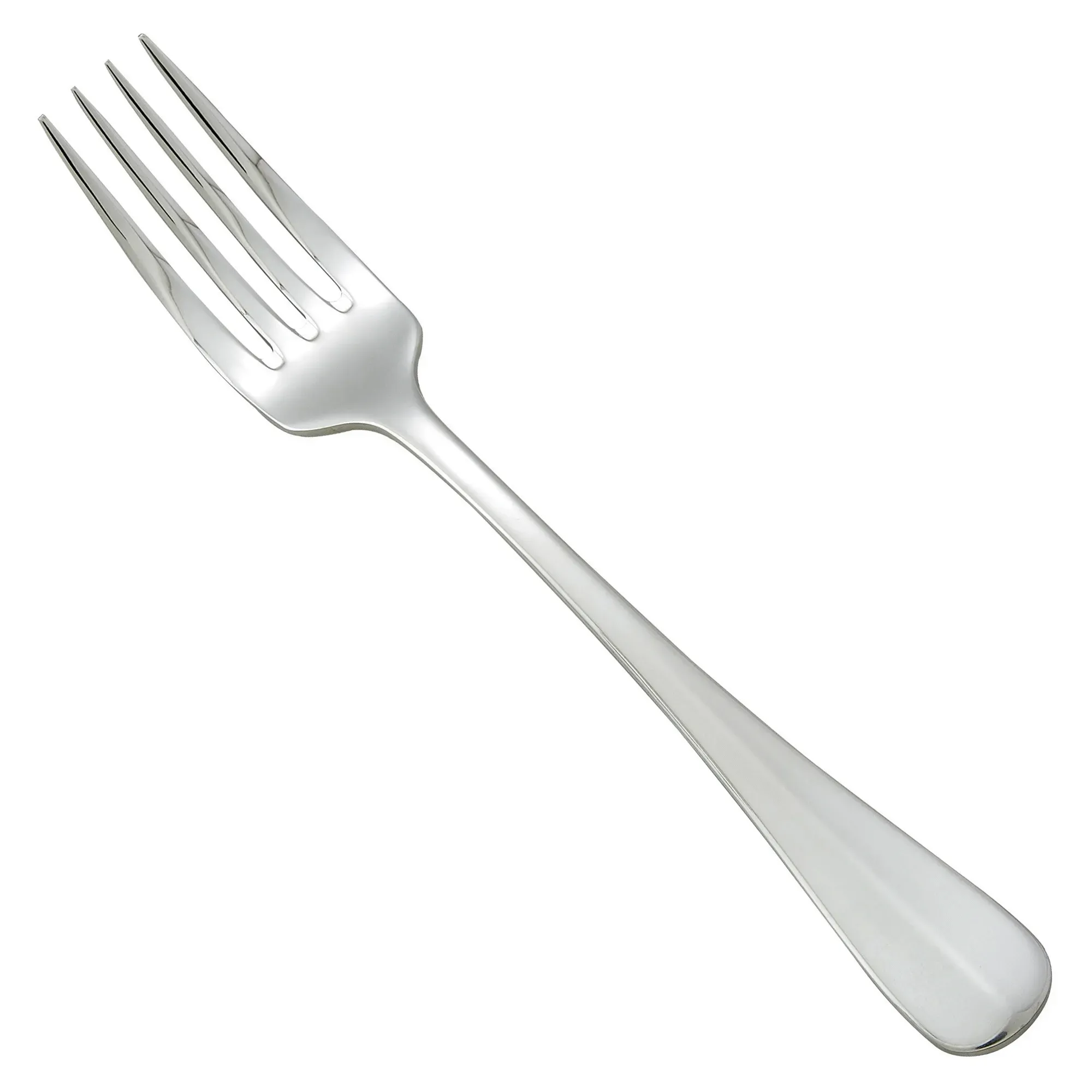 Enhance the cooking repertoire with the Winco Stanford Dinner Fork. Crafted from 7-18.188 stainless steel, this extra heavy weight fork is designed to withstand the rigors of a bustling restaurant environment while maintaining an elegant appearance. The mirror finish adds a touch of sophistication, making it a perfect addition to any dining setting, from casual eateries to fine dining establishments.