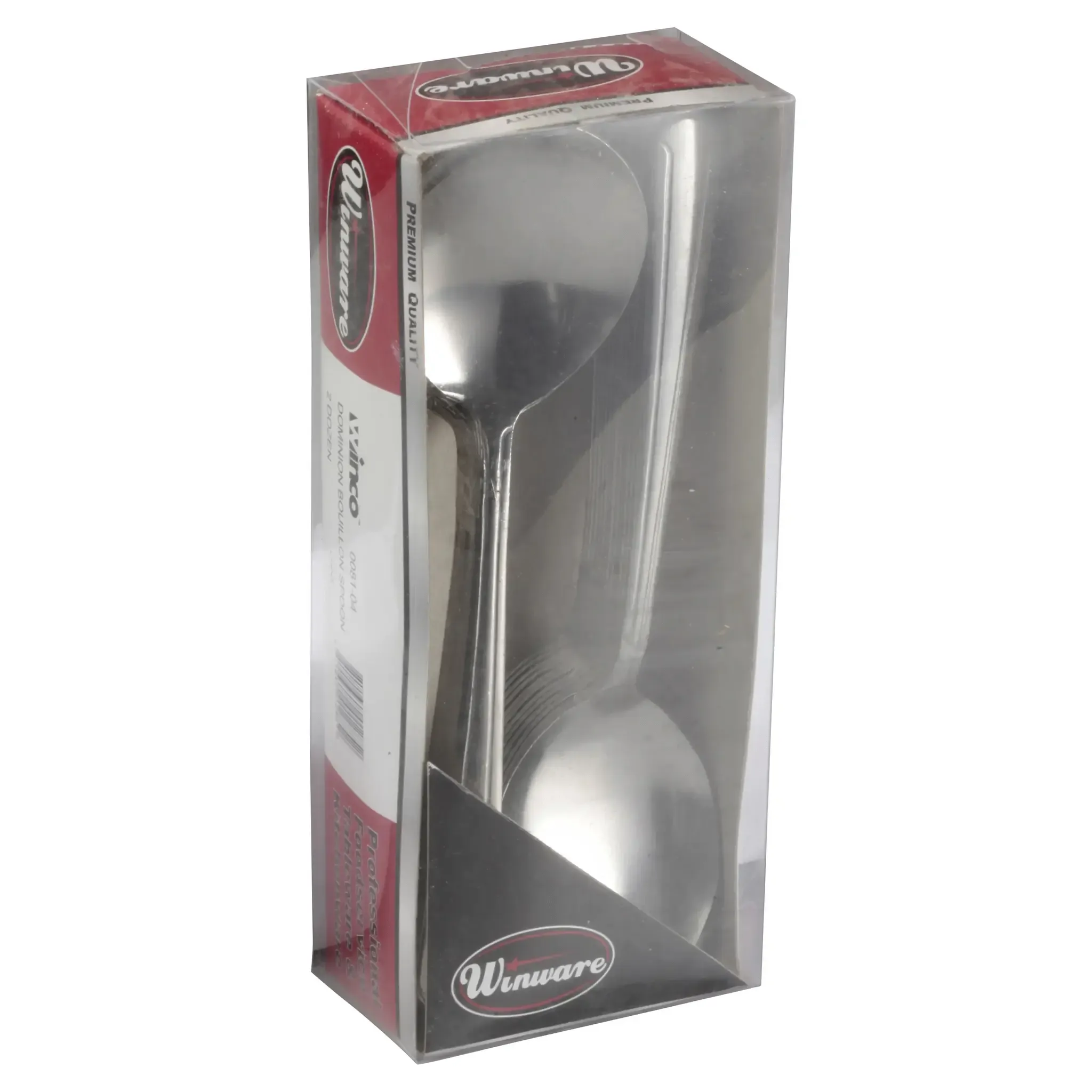 Experience the difference in quality with the Winco Bouillon Spoon. Crafted from 6.180 stainless steel, this medium-weight utensil is designed to meet the high standards of any restaurant setting. The vibro finish adds a touch of elegance, ensuring that each spoon not only performs well but also looks impeccable on your table. The Winco Bouillon Spoon is part of the Dominion clear view pack, which guarantees a consistent and polished appearance. This makes it an ideal choice for establishments that prioritize both functionality and aesthetics. The medium weight of the spoon provides a balanced feel, making it comfortable for guests to use while enjoying their soups and broths. Incorporating the Winco Bouillon Spoon into your restaurant's tableware collection will elevate the dining experience for your patrons. The high-quality 6.180 stainless steel construction ensures durability and longevity, even with frequent use. This makes it a cost-effective investment for any busy restaurant. While the model number 0081-04 may not be immediately relevant to your guests, it signifies the meticulous design and manufacturing process that goes into each spoon. This attention to detail is what sets the Winco Bouillon Spoon apart from other options on the market. Upgrade your restaurant's cutlery with the Winco Bouillon Spoon and let your guests experience the perfect blend of style and functionality.