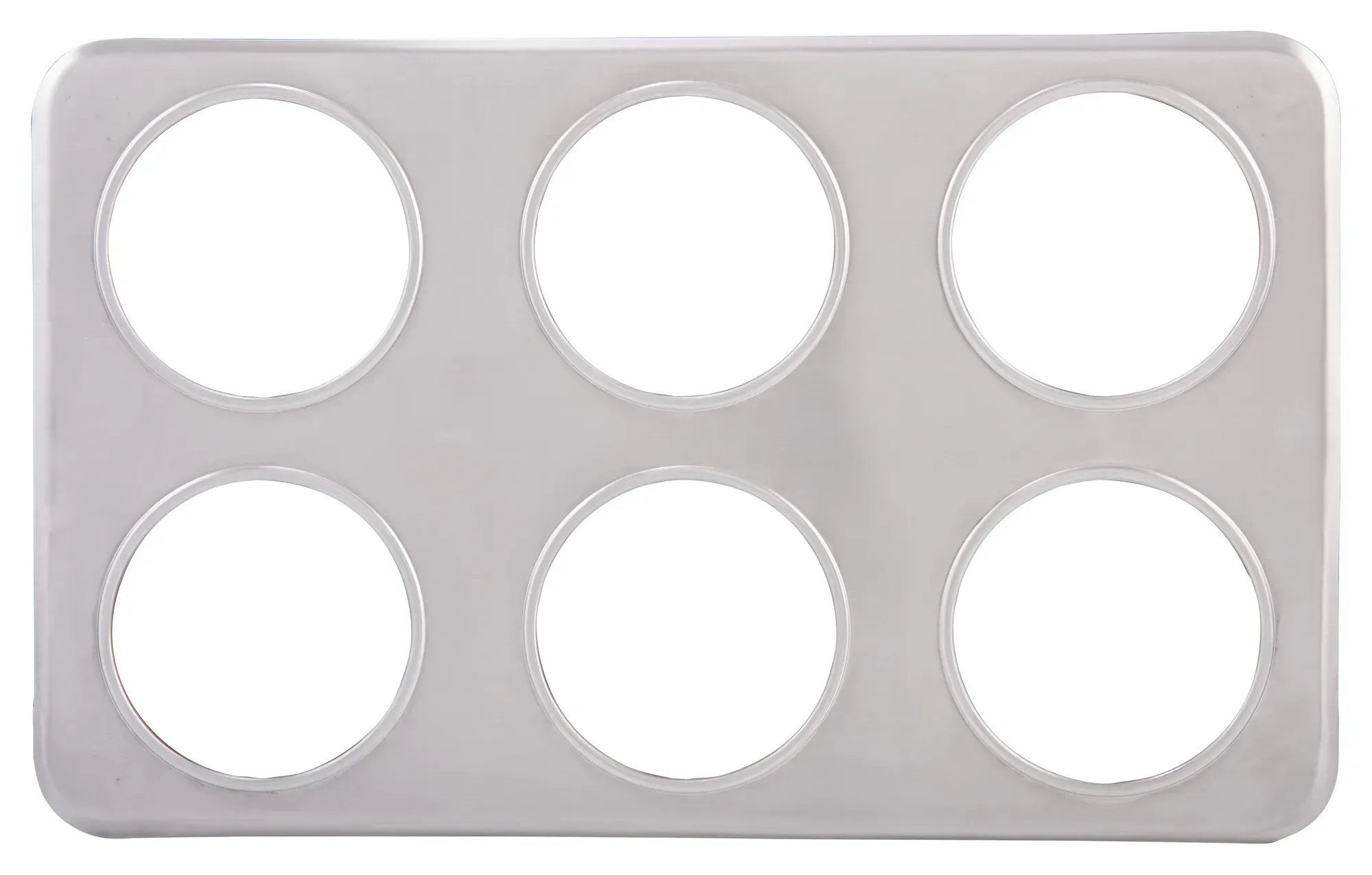 Elevate culinary creations with the Winco Adapter Plate. Designed to meet the rigorous demands of a bustling restaurant kitchen, this adapter plate measures 21 inches wide by 13 inches deep and features six 4-3/4 inch holes, perfectly accommodating 2-1/2 quart insets. Crafted from high-quality stainless steel, the Winco Adapter Plate ensures durability and longevity, making it an essential addition to any professional kitchen. The sleek and sturdy design of the Winco Adapter Plate not only enhances the efficiency of your kitchen operations but also maintains a polished and professional appearance. Its precise dimensions and hole sizes are tailored to fit seamlessly with your existing equipment, ensuring a snug and secure fit for your insets. This adaptability makes it an invaluable tool for chefs who require flexibility and reliability in their culinary endeavors. Incorporating the Winco Adapter Plate into your kitchen setup allows for streamlined food preparation and service, reducing the time and effort needed to manage multiple insets. Whether you're serving soups, sauces, or other hot dishes, this adapter plate ensures that your insets remain stable and accessible, enhancing both the presentation and functionality of your food service. The Winco Adapter Plate, model ADP-444, is a testament to Winco's commitment to quality and innovation in kitchenware. Its robust construction and thoughtful design make it a must-have for any restaurant aiming to optimize its kitchen operations and deliver exceptional dining experiences. Invest in the Winco Adapter Plate today and witness the difference it can make in your culinary creations.