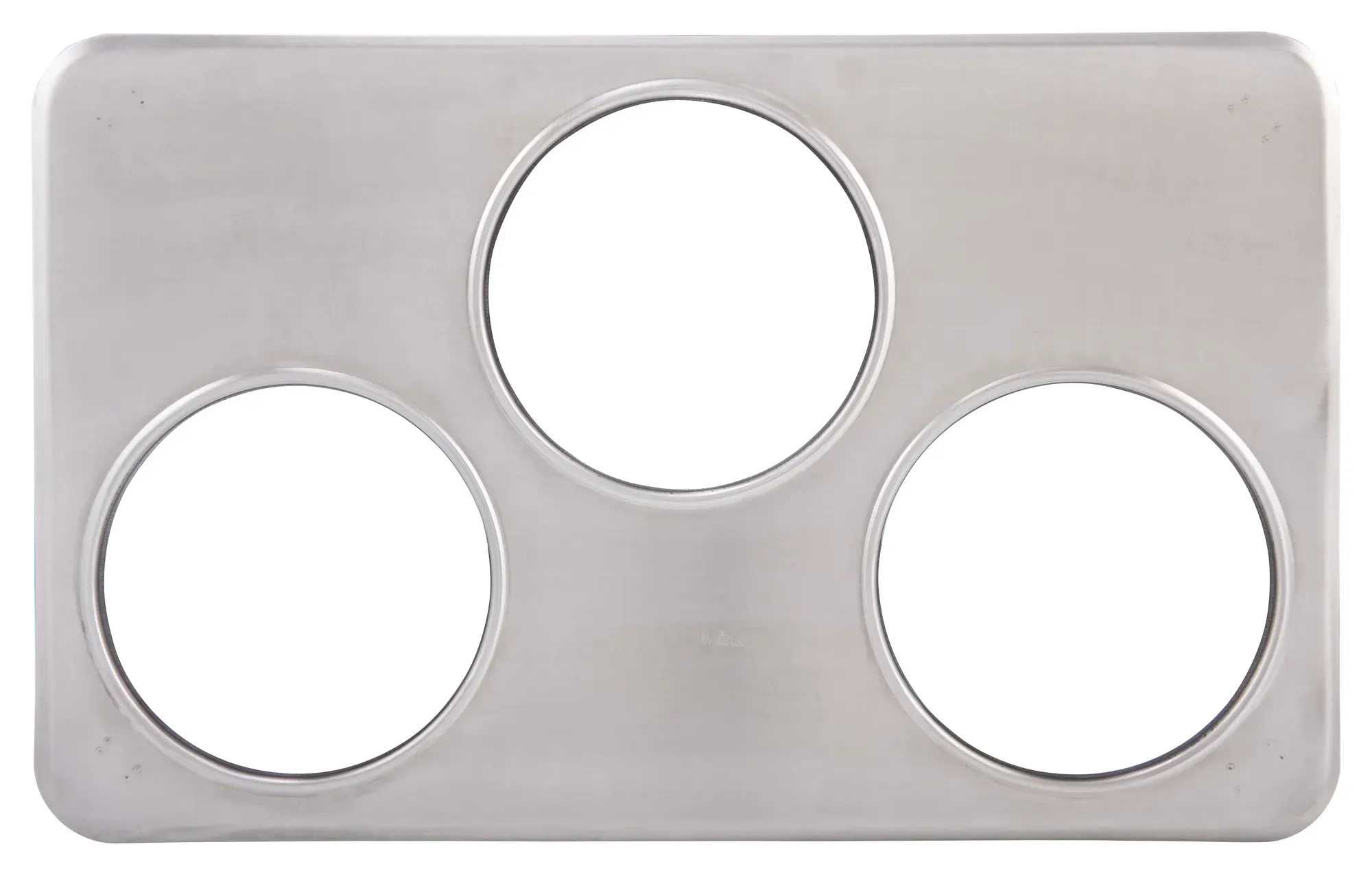 Elevate service with the Winco Adapter Plate, a must-have for any restaurant looking to streamline its kitchen operations. Designed with precision and durability in mind, this Adapter Plate measures 21 inches wide by 13 inches deep, making it a versatile addition to your kitchen setup. Crafted from high-quality stainless steel, the Winco Adapter Plate is built to withstand the rigors of a busy restaurant environment. Its robust construction ensures long-lasting performance, providing you with a reliable solution for your food service needs. The plate features three 6-3/8 inch holes, perfectly sized to fit 4-quart insets, allowing for efficient and organized food preparation and service. The Winco Adapter Plate is not just about functionality; it also adds a touch of professionalism to your kitchen. Its sleek stainless steel finish complements any kitchen decor, making it an attractive and practical choice for chefs and kitchen staff alike. Whether you're serving soups, sauces, or other hot dishes, the Winco Adapter Plate ensures that your insets are securely held in place, reducing the risk of spills and maintaining a clean and orderly workspace. This model, ADP-666, is specifically designed to meet the high standards of the food service industry, ensuring that your kitchen runs smoothly and efficiently. Incorporate the Winco Adapter Plate into your kitchen today and experience the difference in quality and performance. This essential tool is sure to enhance your restaurant's service, making it easier to deliver delicious meals to your customers with precision and care.