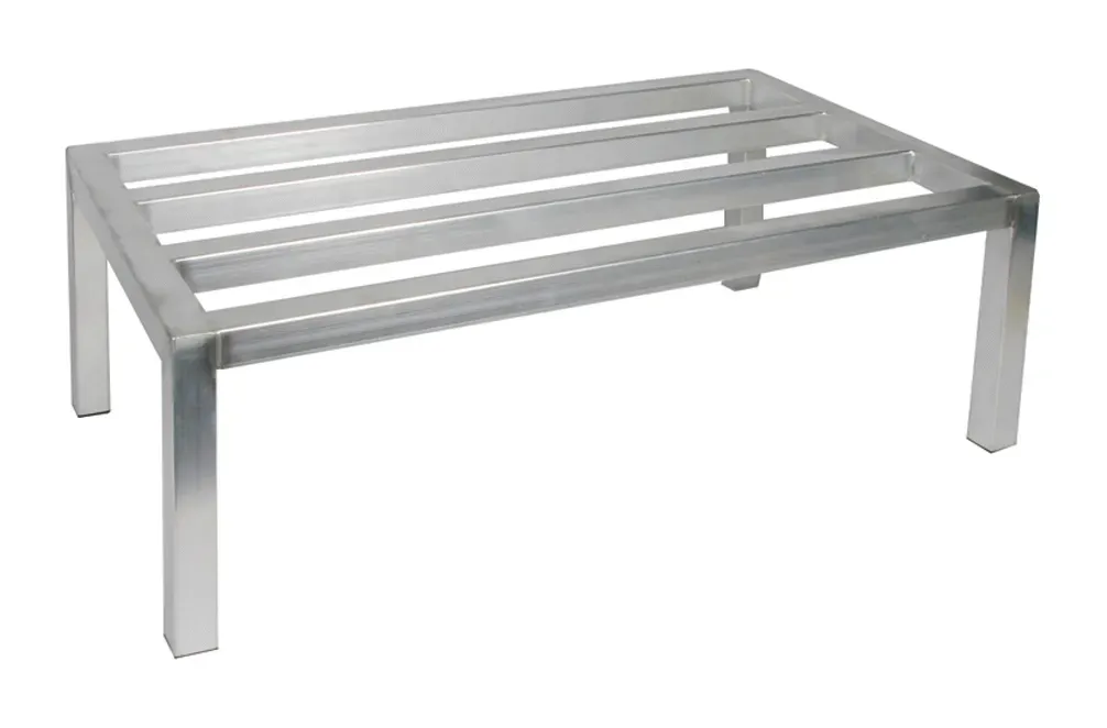 Crafted for professionals with the highest standards in mind, the Winco Dunnage Rack is an essential addition to any restaurant's storage solutions. Measuring 20 x 60 x 12 inches, this robust rack is designed to hold up to an impressive 1200 lbs., making it perfect for storing bulk ingredients, heavy kitchen equipment, or large containers with ease. Constructed from durable aluminum, the Winco Dunnage Rack features a tubular welded structure that ensures long-lasting performance and stability. This sturdy design not only supports heavy loads but also resists corrosion, making it ideal for the demanding environment of a commercial kitchen. The rack's NSF certification guarantees that it meets strict public health and safety standards, providing you with peace of mind. The Winco Dunnage Rack's generous dimensions offer ample storage space while its 12-inch height keeps items elevated off the floor, promoting better air circulation and hygiene. This is particularly important in maintaining the quality and safety of your stored goods. Whether you are organizing your walk-in cooler, dry storage area, or any other part of your kitchen, the Winco Dunnage Rack (Model: ADRK-2060) is a reliable and practical choice. Its combination of strength, durability, and compliance with health standards makes it a valuable asset for any restaurant looking to optimize its storage capabilities. Invest in the Winco Dunnage Rack today and experience the difference in your kitchen's organization and efficiency.