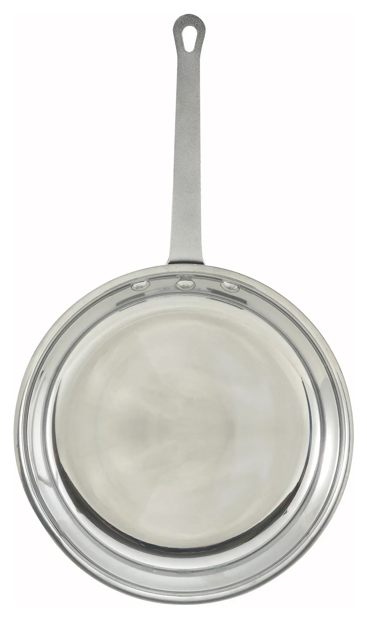 Elevate service with the Majestic Fry Pan, an essential addition to any professional kitchen. Crafted by Winco, this 8-inch diameter fry pan is designed to meet the rigorous demands of a bustling restaurant environment. The Majestic Fry Pan boasts a robust construction with 3003 aluminum, ensuring superior heat distribution and durability. At 3.5mm thick, it provides the perfect balance between weight and performance, making it easy to handle while maintaining excellent cooking results. The mirror finish not only adds a touch of elegance to your kitchen but also facilitates easy cleaning, ensuring that your cookware remains in pristine condition. The riveted handle offers a secure and comfortable grip, allowing chefs to maneuver the pan with confidence and precision. This feature is particularly beneficial during high-volume service periods when efficiency and safety are paramount. NSF certification guarantees that the Majestic Fry Pan meets the highest standards of public health protection, making it a reliable choice for any foodservice establishment. While the model number AFP-8 may be referenced for inventory or ordering purposes, the true value lies in the pan's exceptional performance and quality. Incorporate the Majestic Fry Pan into your kitchen arsenal and experience the difference it makes in your culinary creations. Whether you're searing, sautéing, or frying, this versatile pan will help you achieve consistent, professional results every time. Elevate your kitchen's capabilities with the Majestic Fry Pan and ensure your dishes are always cooked to perfection.