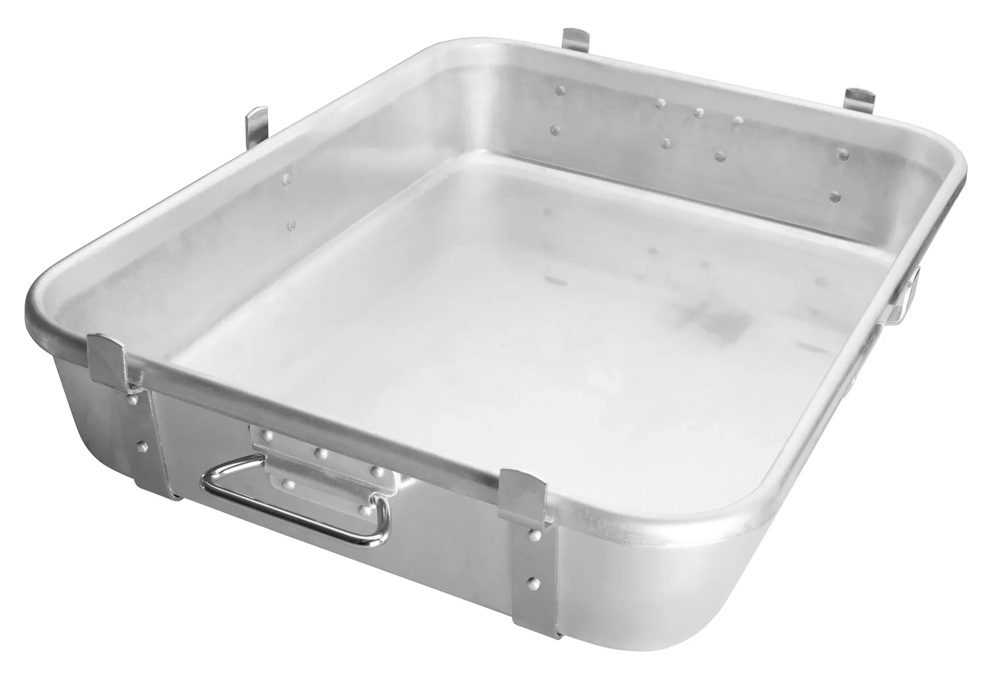A kitchen essential using the Winco Double Roast Pan, this robust and versatile piece of cookware is designed to meet the high demands of any restaurant setting. Measuring 24 x 18 x 4-1/2 inches deep, this rectangular pan offers ample space for roasting large quantities of meat, vegetables, or other ingredients, making it perfect for busy kitchens that need to prepare multiple servings at once. Crafted from 2.4mm thick, 10-gauge heavy-duty aluminum, the Winco Double Roast Pan ensures even heat distribution and excellent durability. This construction not only enhances cooking performance but also guarantees that the pan can withstand the rigors of daily use in a commercial kitchen. The heavy-duty aluminum material is resistant to warping and denting, ensuring that the pan maintains its shape and functionality over time. The inclusion of straps and lugs adds to the practicality of this roast pan. These features provide additional support and stability, making it easier to handle the pan when it is full. Whether you are transferring it in and out of the oven or moving it around the kitchen, the straps and lugs ensure a secure grip, reducing the risk of spills or accidents. In summary, the Winco Double Roast Pan (Model: ALRP-1824L) is an indispensable tool for any restaurant. Its generous size, durable construction, and practical design elements make it a reliable choice for chefs who demand the best from their kitchen equipment. Enhance your culinary operations with this essential roast pan and experience the difference in quality and performance.