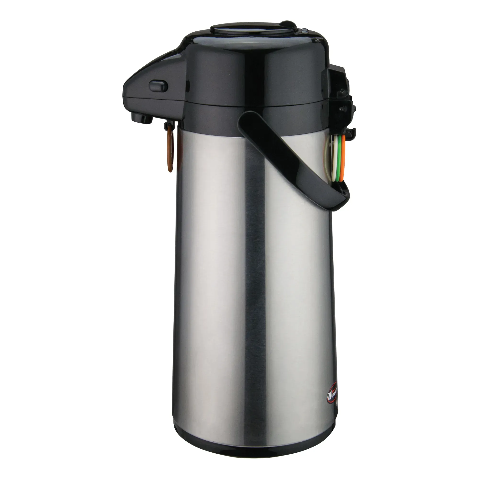 Enhance kitchen efficiency with the Winco Airpot 2.2 Liter Glass Liner. This top-of-the-line airpot is designed to meet the high demands of a bustling restaurant environment. With a generous 2.2-liter capacity, it ensures you have ample hot beverages ready to serve your customers throughout the day. The Winco Airpot features a double-wall insulated design that excels in heat retention, keeping your beverages at a piping hot 171°F for up to 10 hours and at a warm 147°F for an impressive 24 hours. This means less time spent reheating and more time focusing on delivering exceptional service. Crafted with a durable stainless steel body and a sleek satin finish, this airpot not only performs exceptionally but also adds a touch of elegance to your beverage station. The push-button mechanism allows for easy, one-handed dispensing, making it convenient for both staff and customers. The swivel base ensures smooth and effortless access from any angle, enhancing the overall user experience. Additionally, the Winco Airpot comes with four colored identification tags, allowing you to easily differentiate between various beverages, ensuring your guests get exactly what they want. Whether you’re serving coffee, tea, or any other hot beverage, the Winco Airpot 2.2 Liter Glass Liner is an indispensable tool for maintaining optimal temperature and flavor. Invest in this reliable and stylish airpot to elevate your restaurant’s beverage service to the next level.