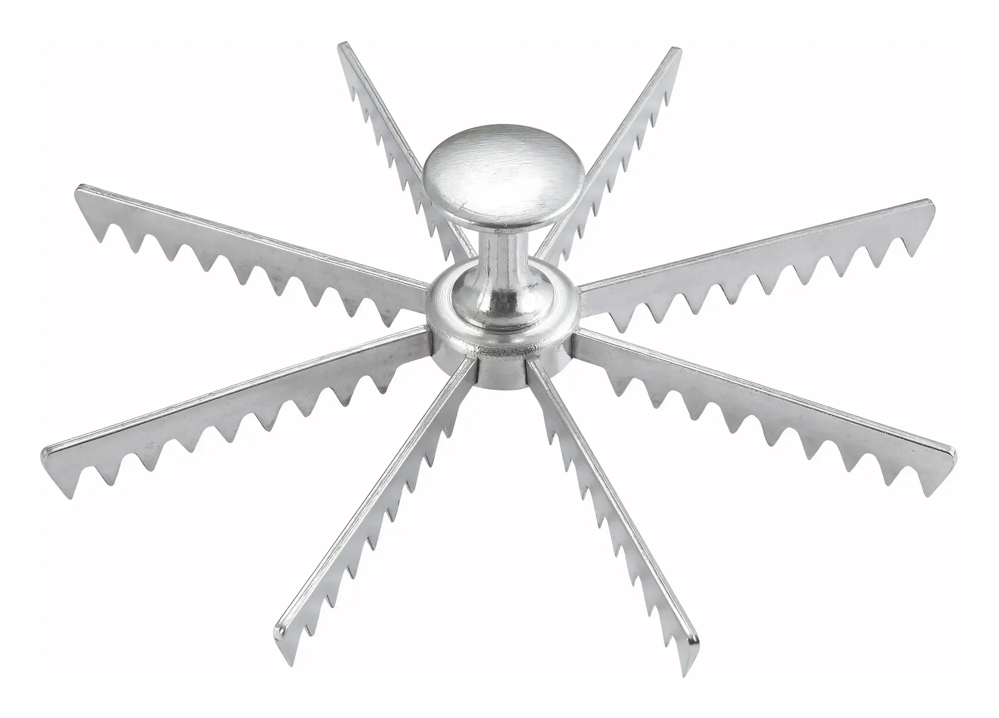 Bring versatility and style to the kitchen with the Winco Pie & Cake Marker. Designed to meet the high demands of a bustling restaurant, this essential tool ensures precision and consistency in every slice. Crafted from durable cast aluminum, the Pie & Cake Marker is built to last, providing reliable performance for years to come. The Winco Pie & Cake Marker features an 8-cut design, making it perfect for evenly dividing pies and cakes into eight equal portions. This not only enhances the presentation of your desserts but also ensures that each serving is uniform, which is crucial for maintaining portion control and customer satisfaction. In a fast-paced restaurant environment, efficiency is key. The lightweight yet sturdy construction of the Pie & Cake Marker allows for quick and easy use, reducing preparation time and increasing productivity in the kitchen. Its ergonomic design ensures a comfortable grip, making it easy for your staff to handle even during the busiest service hours. While the model number APM-08 may not be the first thing on your mind, it signifies the quality and reliability that Winco products are known for. This Pie & Cake Marker is a testament to Winco's commitment to providing top-notch kitchen tools that enhance the culinary experience. Elevate your dessert presentation and streamline your kitchen operations with the Winco Pie & Cake Marker. It's the perfect addition to any restaurant looking to combine functionality with style.