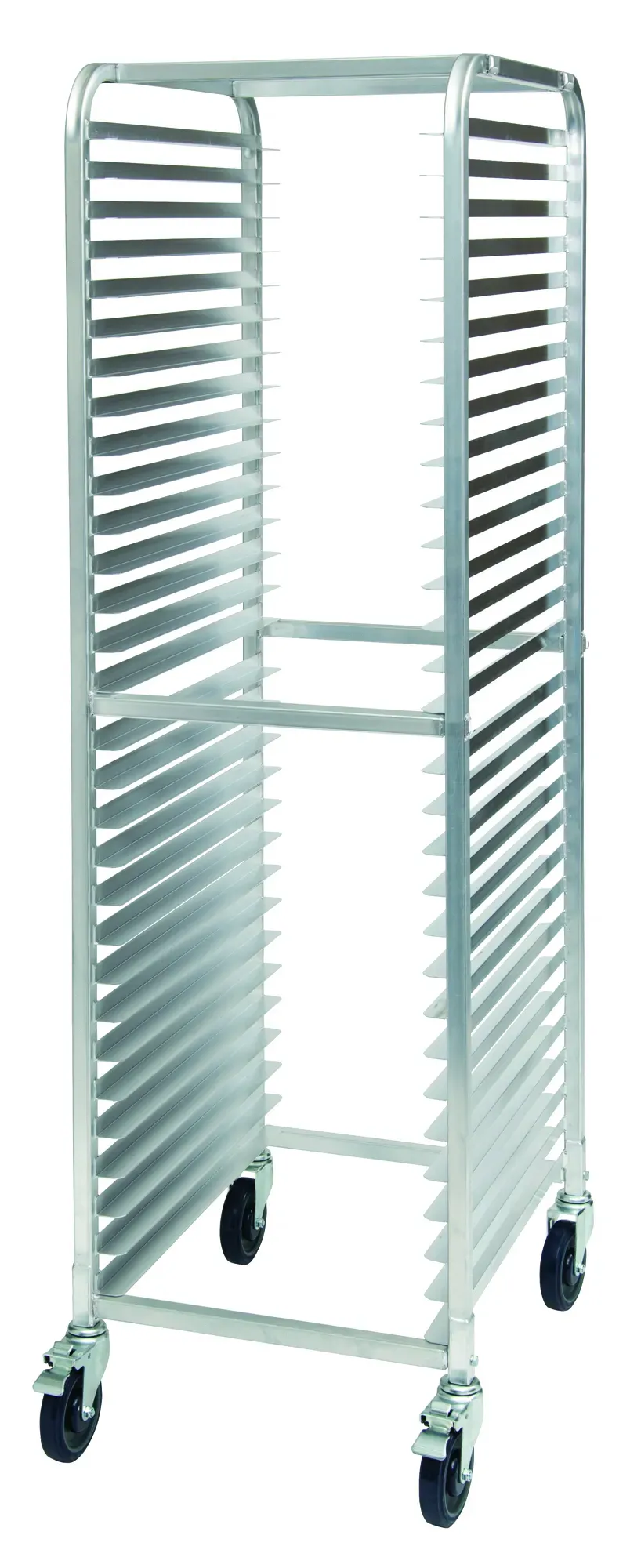 The ultimate tool for gourmet cooking is the Winco Sheet Pan Rack 30-Tier. Designed to meet the high demands of a bustling restaurant kitchen, this rack offers unparalleled efficiency and organization. With 30 tiers and 2-inch spacing, it provides ample room for multiple sheet pans, making it ideal for large-scale baking, roasting, and cooling tasks. Crafted from durable aluminum, the Winco Sheet Pan Rack 30-Tier ensures long-lasting performance and reliability. The welded construction adds to its sturdiness, allowing it to withstand the rigors of daily use in a professional kitchen. Its NSF certification guarantees that it meets the highest standards of safety and sanitation, a crucial factor in maintaining a clean and compliant kitchen environment. The Winco Sheet Pan Rack 30-Tier is not just about capacity; it' s about convenience. Its design allows for easy maneuverability, ensuring that your kitchen staff can transport multiple pans effortlessly. This feature is particularly beneficial during peak hours when efficiency is paramount. Incorporating the Winco Sheet Pan Rack 30-Tier into your kitchen setup will streamline your operations, enhance productivity, and ensure that your culinary creations are handled with the utmost care. Whether you' re running a bakery, a catering service, or a high-volume restaurant, this rack is an indispensable addition to your kitchen arsenal. Elevate your kitchen' s functionality and keep your workflow seamless with the Winco Sheet Pan Rack 30-Tier. It' s the perfect blend of durability, capacity, and convenience, tailored specifically for the demands of a professional restaurant setting.