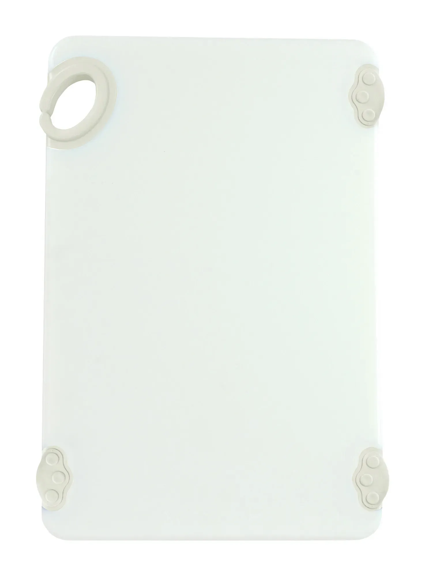 Make a statement in the kitchen with the Winco STATIKBoard Cutting Board. Designed specifically for the demanding environment of a restaurant, this cutting board measures 12 x 18 inches and boasts a 1/2-inch thickness, providing ample space and durability for all your chopping, slicing, and dicing needs. The STATIKBoard Cutting Board is crafted from a high-quality, BPA-free co-polymer material, ensuring it is both safe and robust for daily use. Its white color not only adds a clean, professional look to your kitchen but also makes it easy to spot any food residues, ensuring the highest standards of hygiene. One of the standout features of this cutting board is its rubber grip hook, which offers excellent stability during use, preventing any unwanted slipping or sliding. This feature is particularly valuable in a busy restaurant kitchen where safety and efficiency are paramount. Additionally, the STATIKBoard Cutting Board is dishwasher safe, making cleanup a breeze and allowing your staff to focus on what they do best—preparing delicious meals. Its NSF certification further guarantees that it meets the strict standards for public health protection, giving you peace of mind. Whether you are chopping vegetables, slicing meats, or preparing garnishes, the Winco STATIKBoard Cutting Board is an essential tool that combines functionality, safety, and ease of maintenance. Elevate your kitchen's performance and hygiene with this reliable cutting board.