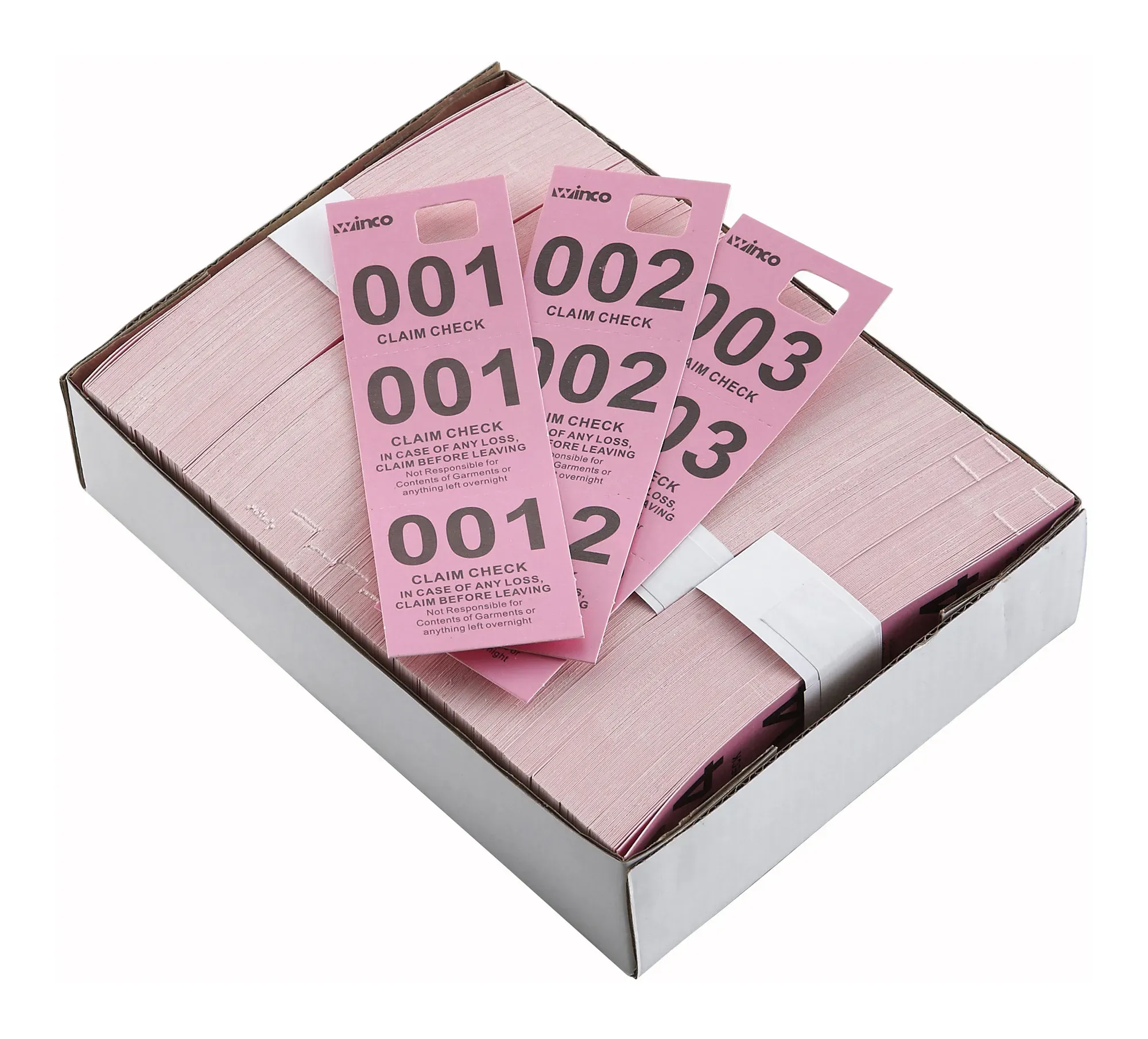 The Winco Coat Check Tickets Pink are not just about aesthetics; they are highly functional and practical. Each ticket is clearly numbered, allowing for seamless tracking of coats and personal items. This feature is particularly beneficial during busy hours, ensuring that guests can retrieve their belongings quickly and without confusion.