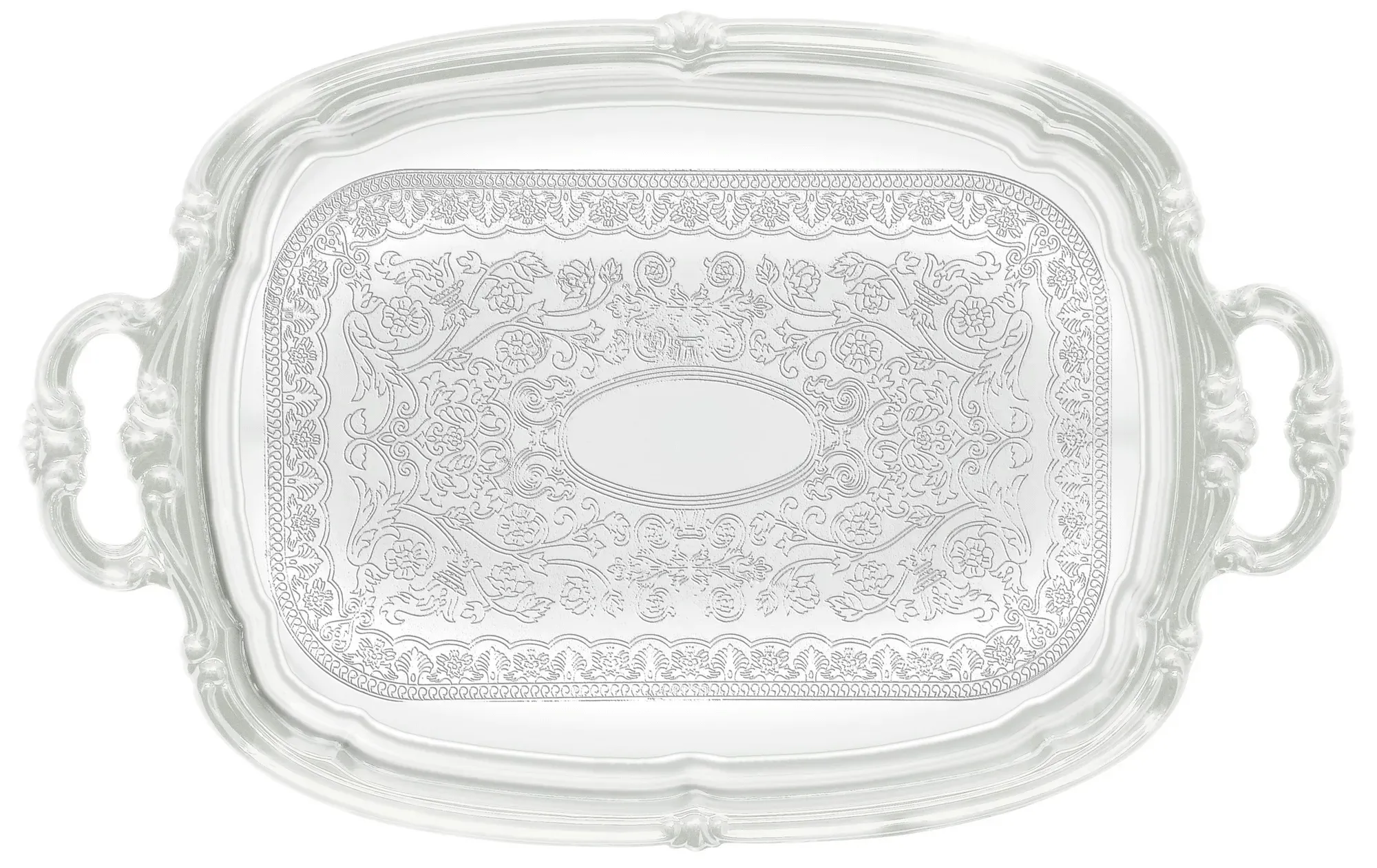 Hand wash only, this serving tray requires minimal maintenance while preserving its pristine condition. The traditional engraving and chrome plating make it a standout piece, perfect for showcasing appetizers, desserts, or beverages in style.