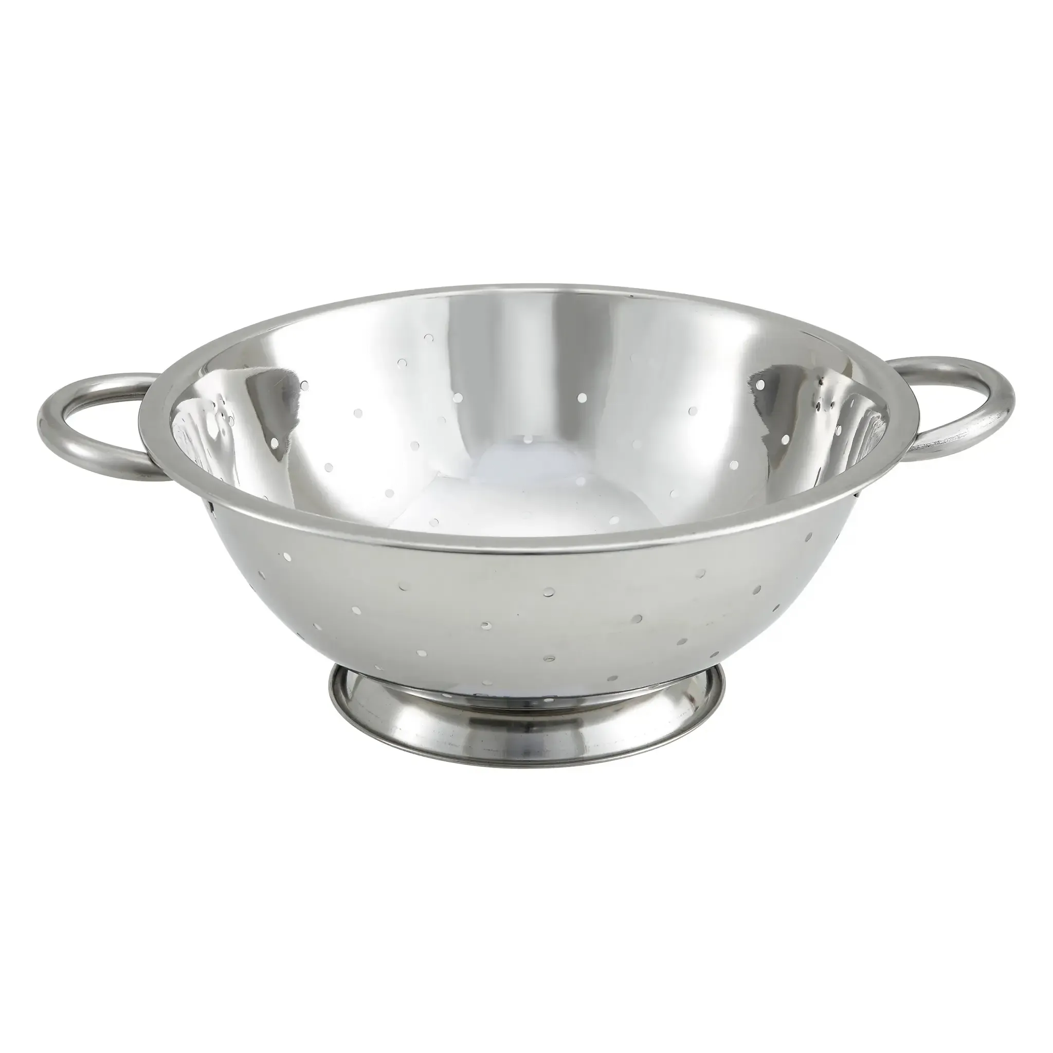 Transform the cooking experience with the Winco Stainless Steel Colander. Designed specifically for the demanding environment of a restaurant kitchen, this 3-quart colander is an essential tool for any culinary professional. With a 10-inch diameter, it provides ample space for rinsing and draining a variety of ingredients, from fresh produce to pasta. Crafted from high-quality stainless steel, the Winco Stainless Steel Colander ensures durability and longevity, standing up to the rigors of daily use. Its round shape and sturdy construction make it easy to handle, while the fine perforations allow for efficient draining without losing small food particles. This makes it perfect for preparing everything from delicate greens to hearty grains. The sleek, polished finish of the Winco Stainless Steel Colander not only adds a touch of elegance to your kitchen but also makes it easy to clean and maintain. Its robust design ensures it remains a reliable tool in your kitchen arsenal, helping you maintain high standards of hygiene and efficiency. Whether you are a chef in a bustling restaurant or managing a busy catering service, the Winco Stainless Steel Colander, Model COD-3, is a versatile and indispensable addition to your kitchen. Elevate your food preparation process with this reliable and efficient colander, designed to meet the high demands of professional cooking environments.
