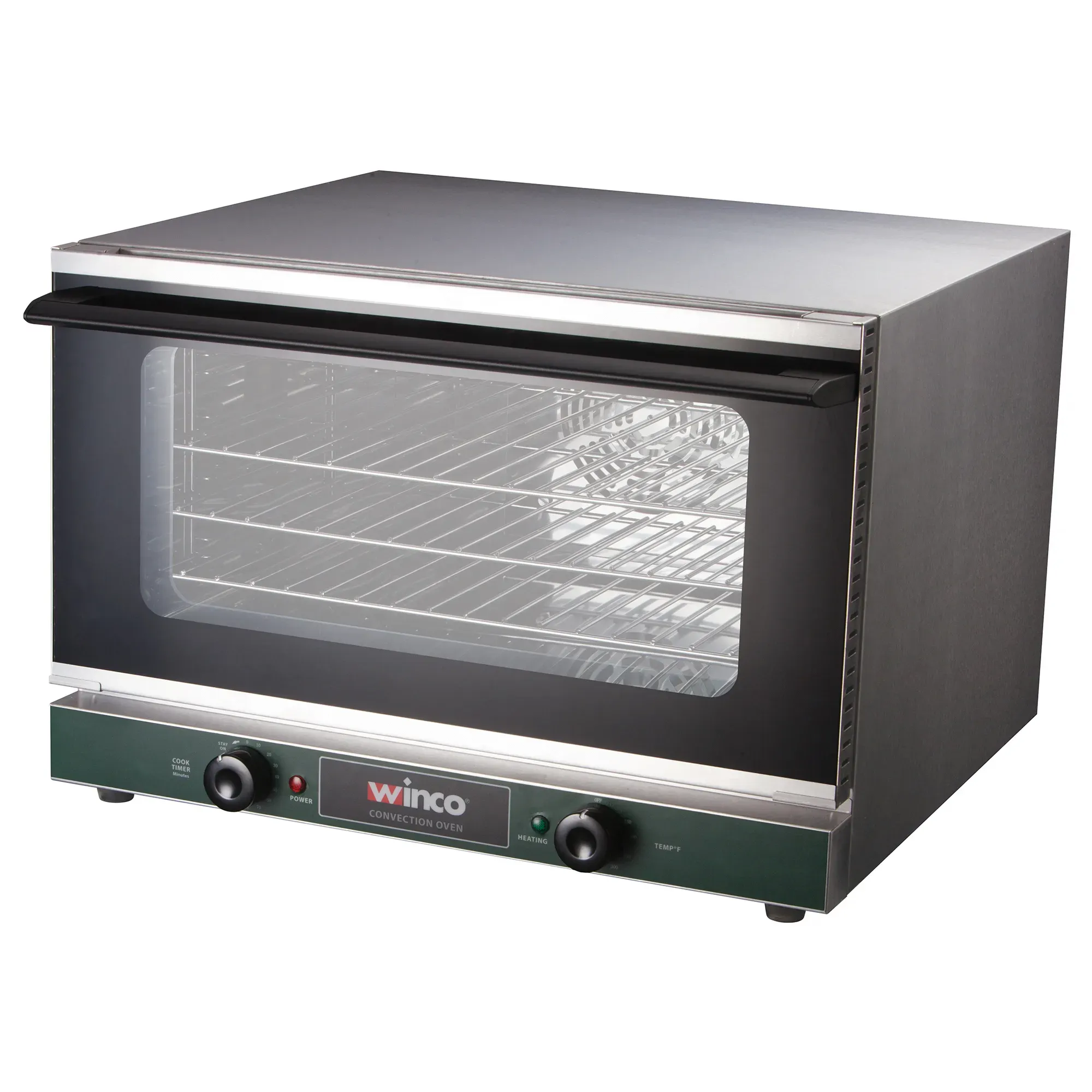 Experience unmatched quality with the Winco Convection Oven, a versatile and efficient addition to any restaurant kitchen. Designed with a half-size countertop footprint, this oven boasts a 1.5 cubic feet capacity, making it perfect for baking, roasting, and reheating a variety of dishes without taking up too much space. The Winco Convection Oven features dial control for easy temperature adjustments, ensuring precise cooking every time. Equipped with three chrome interior shelves, it offers ample space to cook multiple items simultaneously, enhancing your kitchen's productivity. The built-in 120-minute timer with a stay-on feature allows for flexible cooking times, catering to the diverse needs of a busy restaurant environment. Safety and durability are paramount with the Winco Convection Oven. The dual pane tempered glass door provides excellent insulation while allowing you to monitor your dishes without opening the door and losing heat. Constructed from high-quality stainless steel, this oven is built to withstand the rigors of daily use in a commercial kitchen. Operating on a standard 120v601-ph power supply, the Winco Convection Oven draws 13.3 amps and delivers 1.6 kW of power, ensuring efficient and consistent performance. It is also cETLus certified, meeting stringent safety and quality standards. Upgrade your restaurant's kitchen with the Winco Convection Oven and experience the perfect blend of functionality, durability, and efficiency. This reliable appliance will undoubtedly become an indispensable tool in your culinary arsenal.