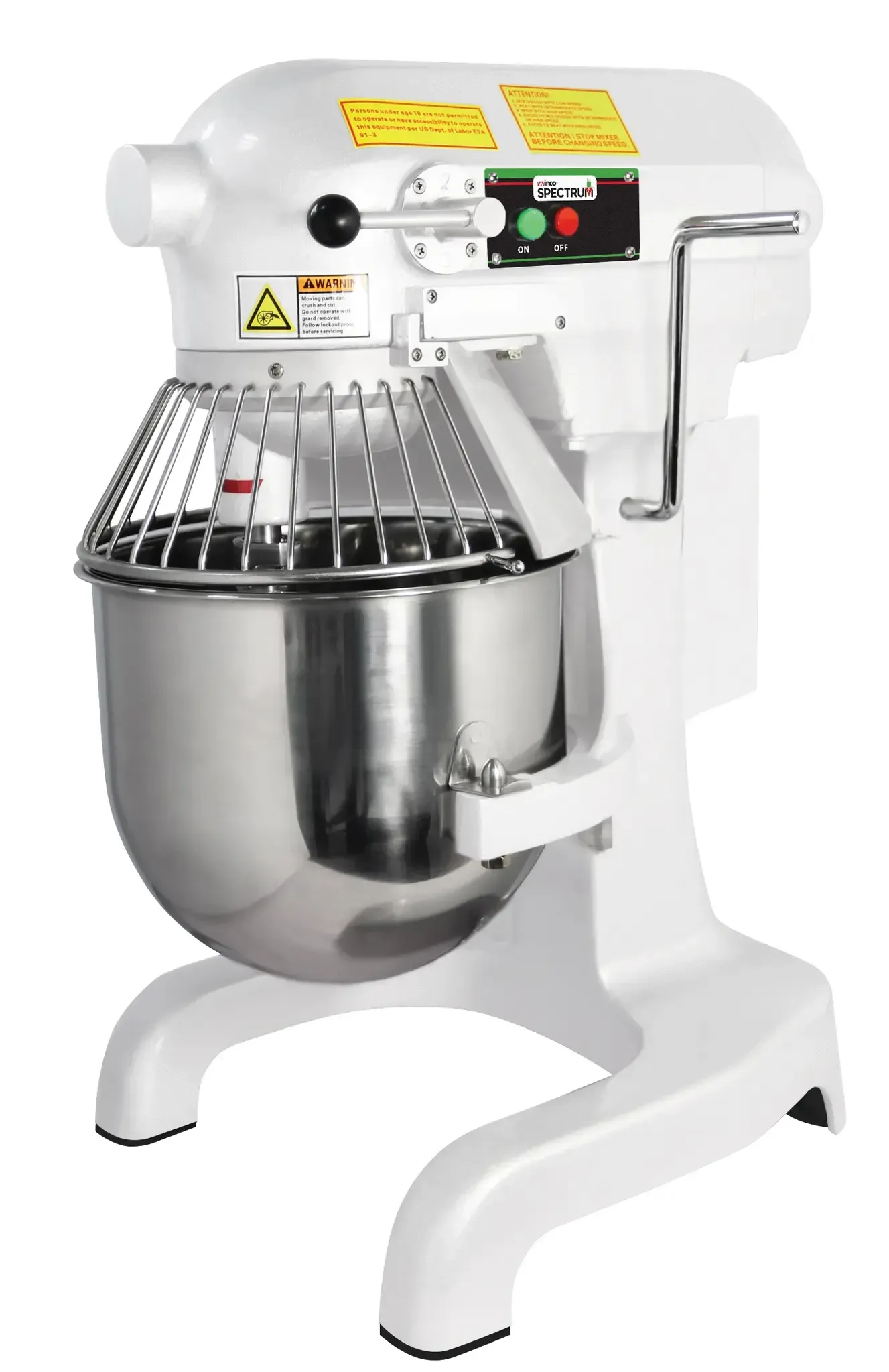 The Winco EMP-10 commercial-grade planetary mixer with hub is a commercial-grade mixer designed to withstand daily use in bakeries, delis and cafes. The high-capacity 10 liter interlocking bowl is made from 304 stainless steel and features a safety guard. The mixer is made from heavy-duty die-cast iron for maximum durability. A gear-driven high-torque motor has 3 speeds to ensure an even mixture even with thick doughs and batters. Non-slip rubber feet hold this mixer securely in place. The stand mixer is compatible with the industry-standard #12 attachment hub. Includes (1) mixer with hub, (1) whip attachment, (1) flat beater and (1) spiral dough hook.
