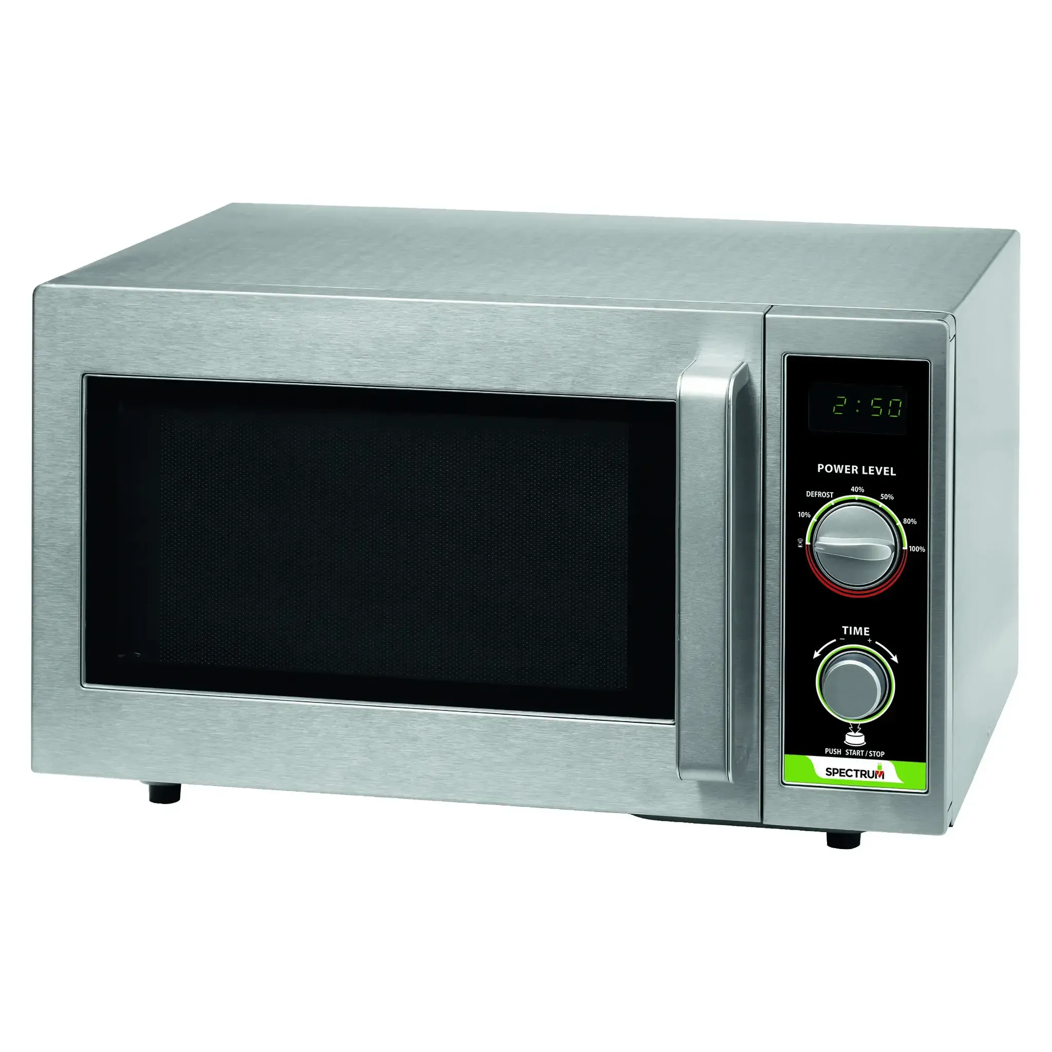 Make a statement in the kitchen with the Winco Spectrum Commercial Microwave. Designed to meet the rigorous demands of a bustling restaurant, this microwave boasts a .9 cubic feet capacity, making it perfect for heating and cooking a variety of dishes. With a powerful 1000 W output, it ensures quick and efficient cooking, saving you valuable time during peak hours.