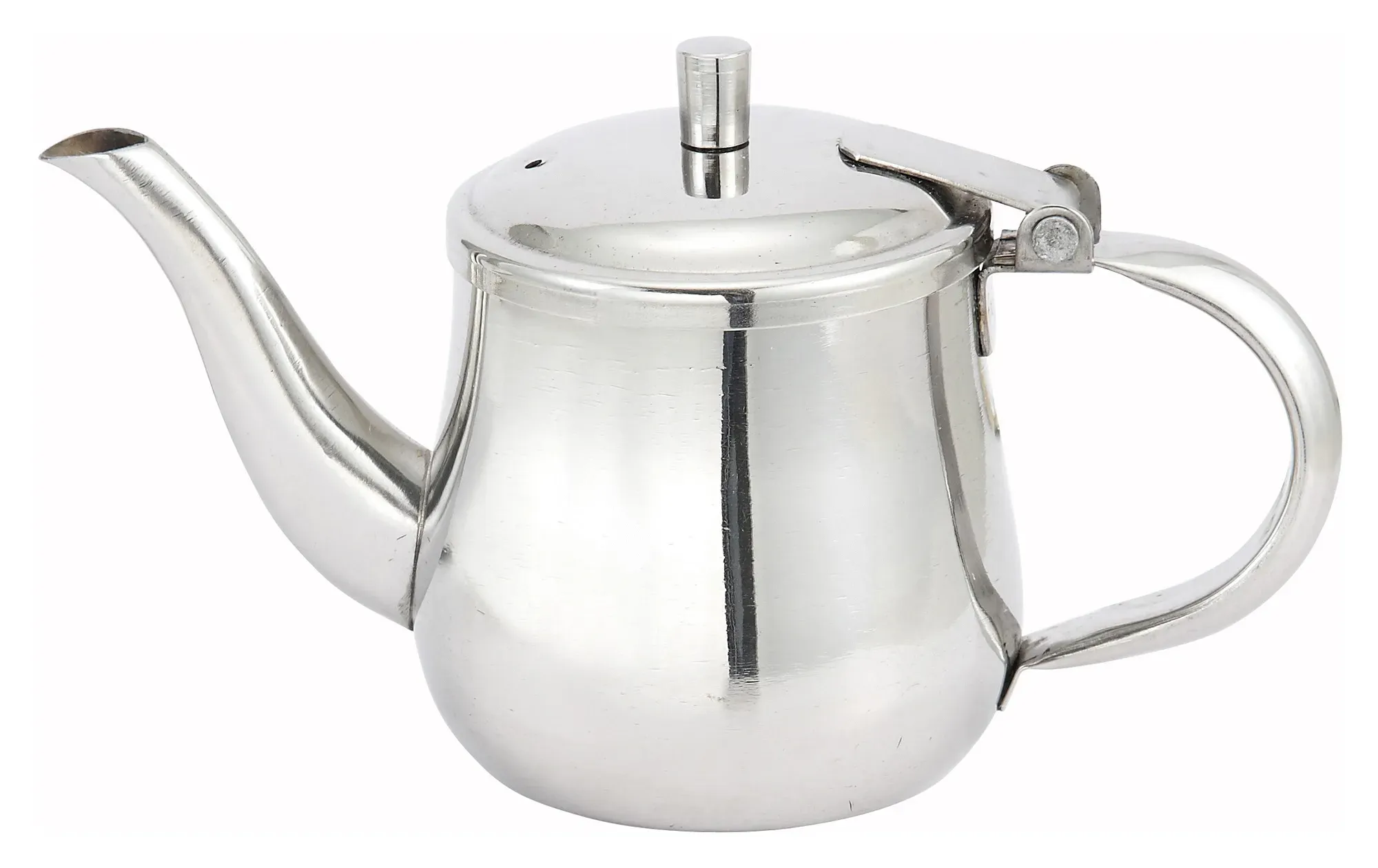Enhance the cooking repertoire with the Winco ServerCreamer. This elegant 10 oz. creamer, model GS-10, is designed to bring both functionality and style to your restaurant setting. Crafted from high-quality stainless steel, the ServerCreamer boasts a mirror finish that adds a touch of sophistication to any table presentation. The ServerCreamer features a gooseneck spout, ensuring precise and controlled pouring, which is essential for serving cream, milk, or other liquid condiments with finesse. The included cover helps maintain the freshness of the contents, making it an ideal choice for busy restaurant environments where quality and efficiency are paramount. With its 10 oz. capacity, the ServerCreamer is perfectly sized for individual table service, reducing the need for constant refills and allowing your staff to focus on providing exceptional customer service. The durable stainless steel construction ensures longevity and ease of cleaning, making it a practical addition to your restaurant's serving ware. Whether you're serving coffee, tea, or specialty beverages, the Winco ServerCreamer enhances the overall dining experience with its sleek design and reliable performance. Its mirror finish not only complements a variety of table settings but also reflects the high standards of your establishment. Incorporate the Winco ServerCreamer into your restaurant's service routine and elevate the presentation and functionality of your beverage offerings. This versatile and stylish creamer is a must-have for any establishment aiming to impress its guests with attention to detail and quality.
