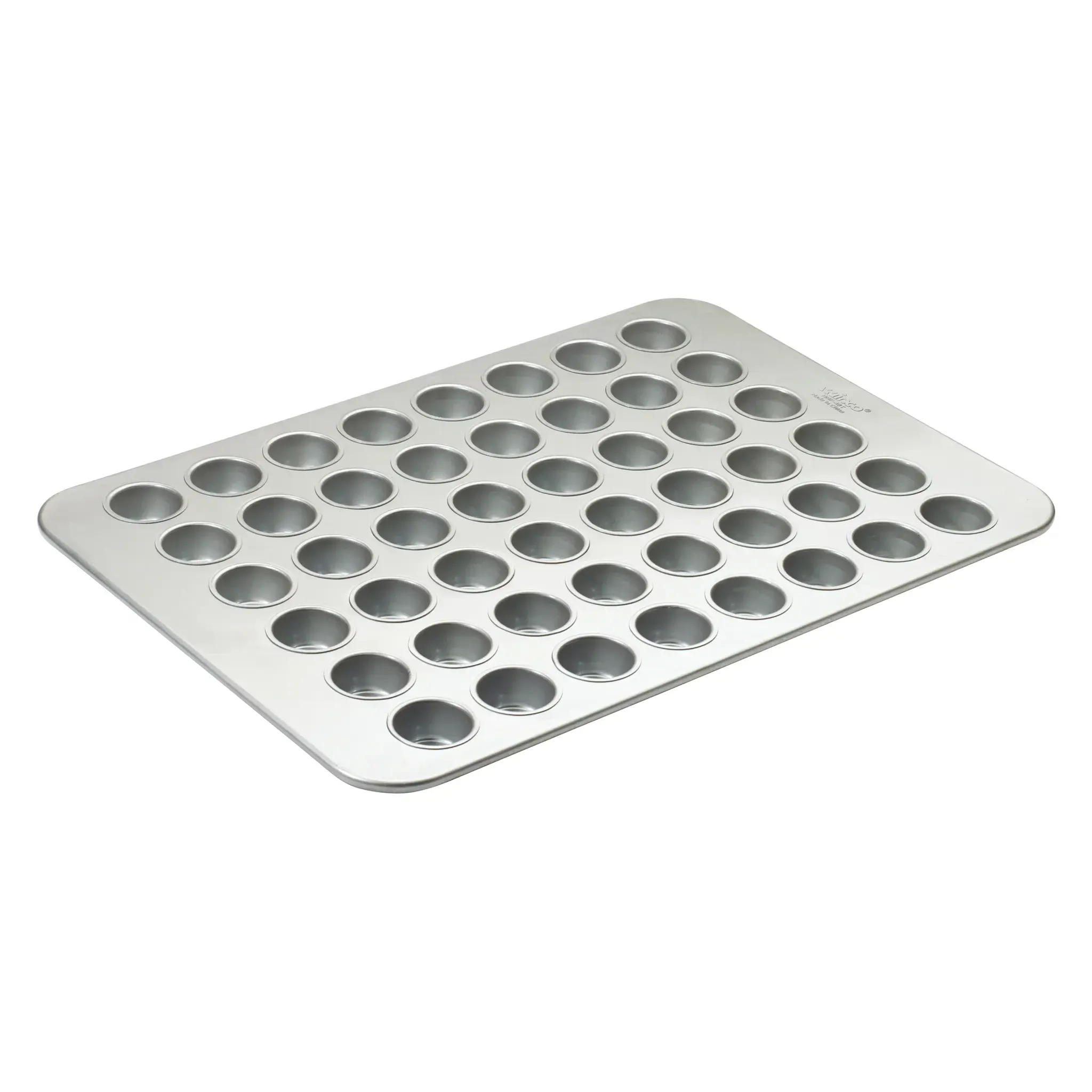 These non-stick muffin pans are designed for use in commercial ovens and on speed racks. The cups are properly spaced for achieving ideal muffin tops. Heavy-duty 26-gauge aluminized steel Premium non-stick coating for clean release Closed bead, wire-in reinforced rim All pans are 17-7/8" x 25-7/8", ideal for sheet pan racks