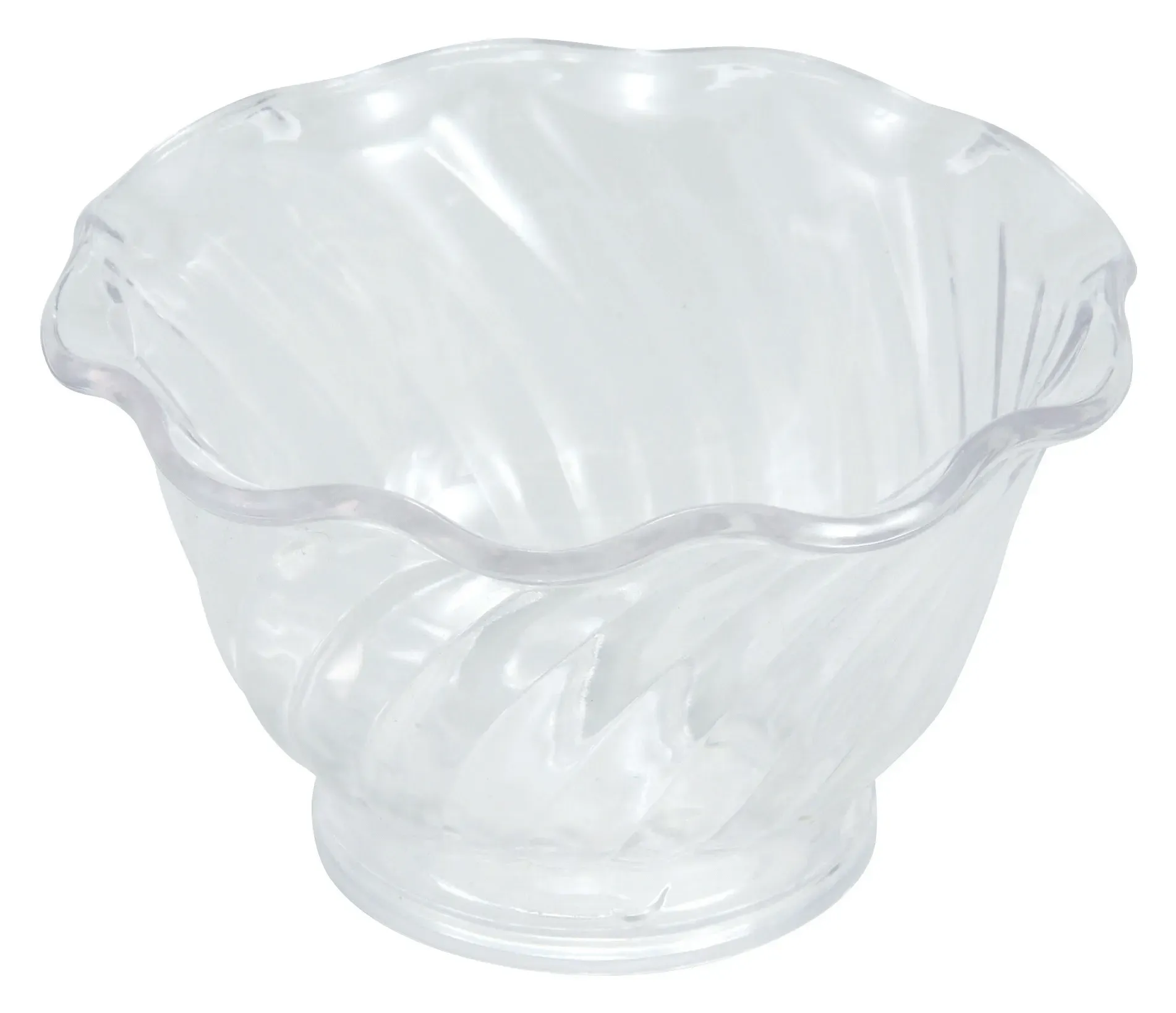 The clear construction of the Winco Ice Cream Dish allows the vibrant colors and textures of your desserts to shine through, creating an enticing visual appeal for your guests. Its 5oz capacity is just the right size for a satisfying dessert portion, ensuring that your patrons leave with a sweet and memorable end to their meal.