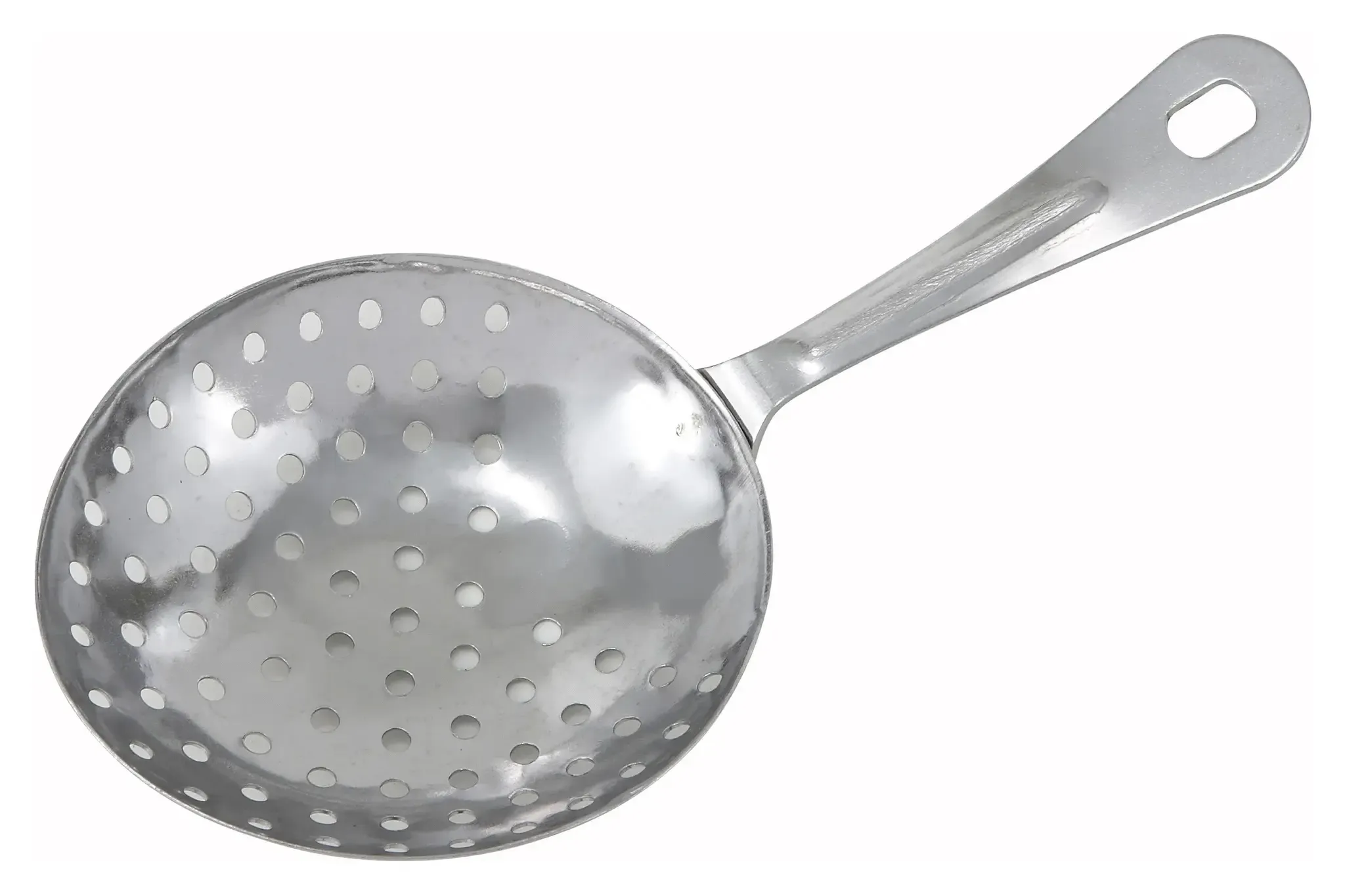 Achieve professional-level results with the Winco Julep Strainer. Crafted from high-quality stainless steel, this essential bar tool is designed to elevate your cocktail-making experience in any restaurant setting. The Winco Julep Strainer ensures durability and longevity, making it a reliable addition to your barware collection. The stainless steel construction of the Winco Julep Strainer not only provides a sleek and polished appearance but also guarantees resistance to rust and corrosion. This makes it ideal for frequent use in a busy restaurant environment, where maintaining hygiene and quality is paramount. The strainer's design allows for efficient straining of ice and other ingredients, ensuring a smooth and refined cocktail every time. While the model number JST-1 may not be the focal point, it signifies the precision and quality associated with Winco products. This strainer is specifically engineered to fit perfectly over most mixing glasses and shakers, providing a secure and comfortable grip for bartenders. Its ergonomic design reduces hand fatigue, allowing for effortless and efficient service during peak hours. Incorporating the Winco Julep Strainer into your bar setup will not only enhance the presentation of your cocktails but also streamline your bartending process. Its robust construction and practical design make it an indispensable tool for any professional bartender. Elevate your restaurant's beverage service with the Winco Julep Strainer and impress your guests with perfectly crafted drinks every time.