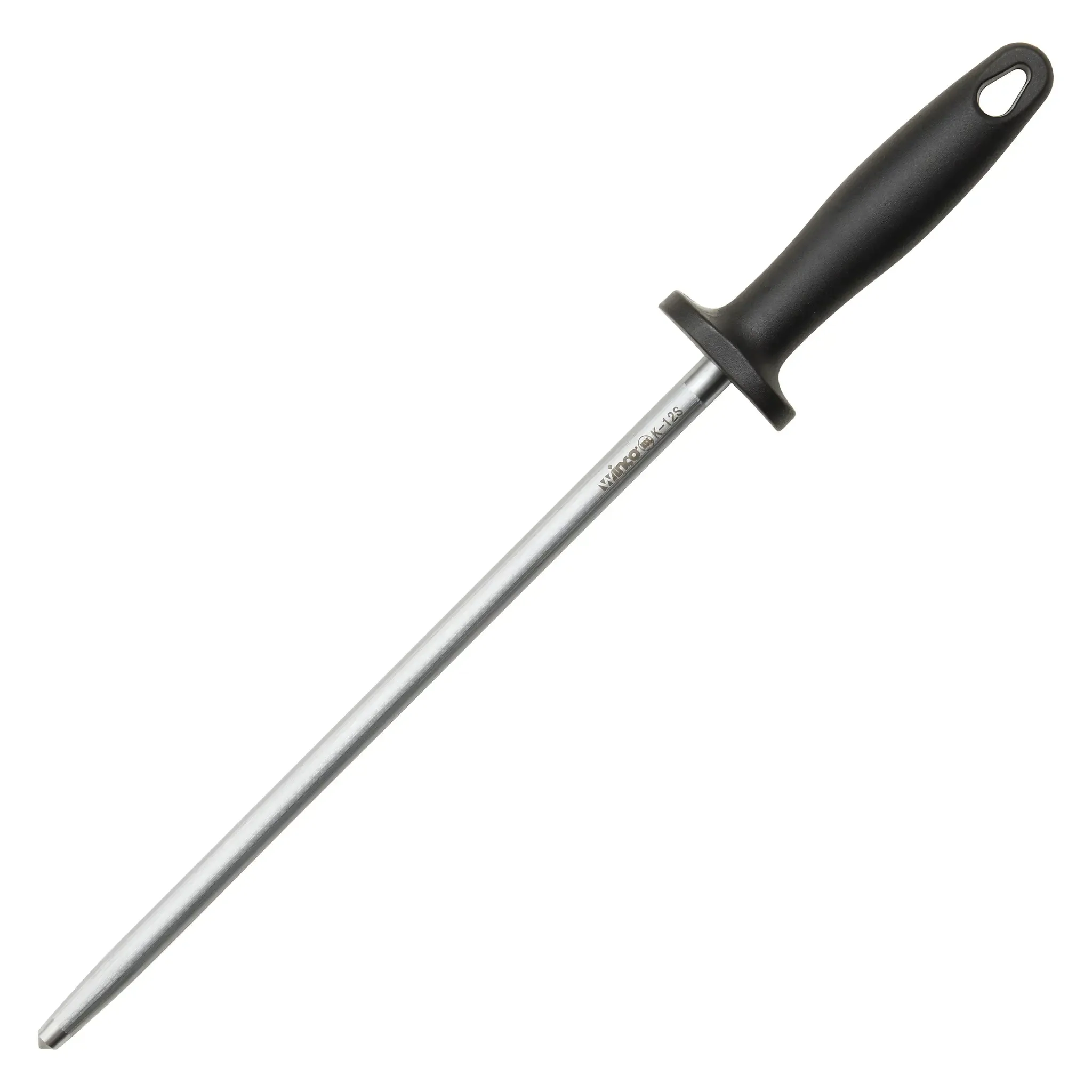 Achieve perfect results every time with the Winco Sharpening Steel. Designed specifically for the demanding environment of a restaurant kitchen, this round stainless steel sharpening tool ensures your knives remain razor-sharp, enhancing both efficiency and safety in food preparation.