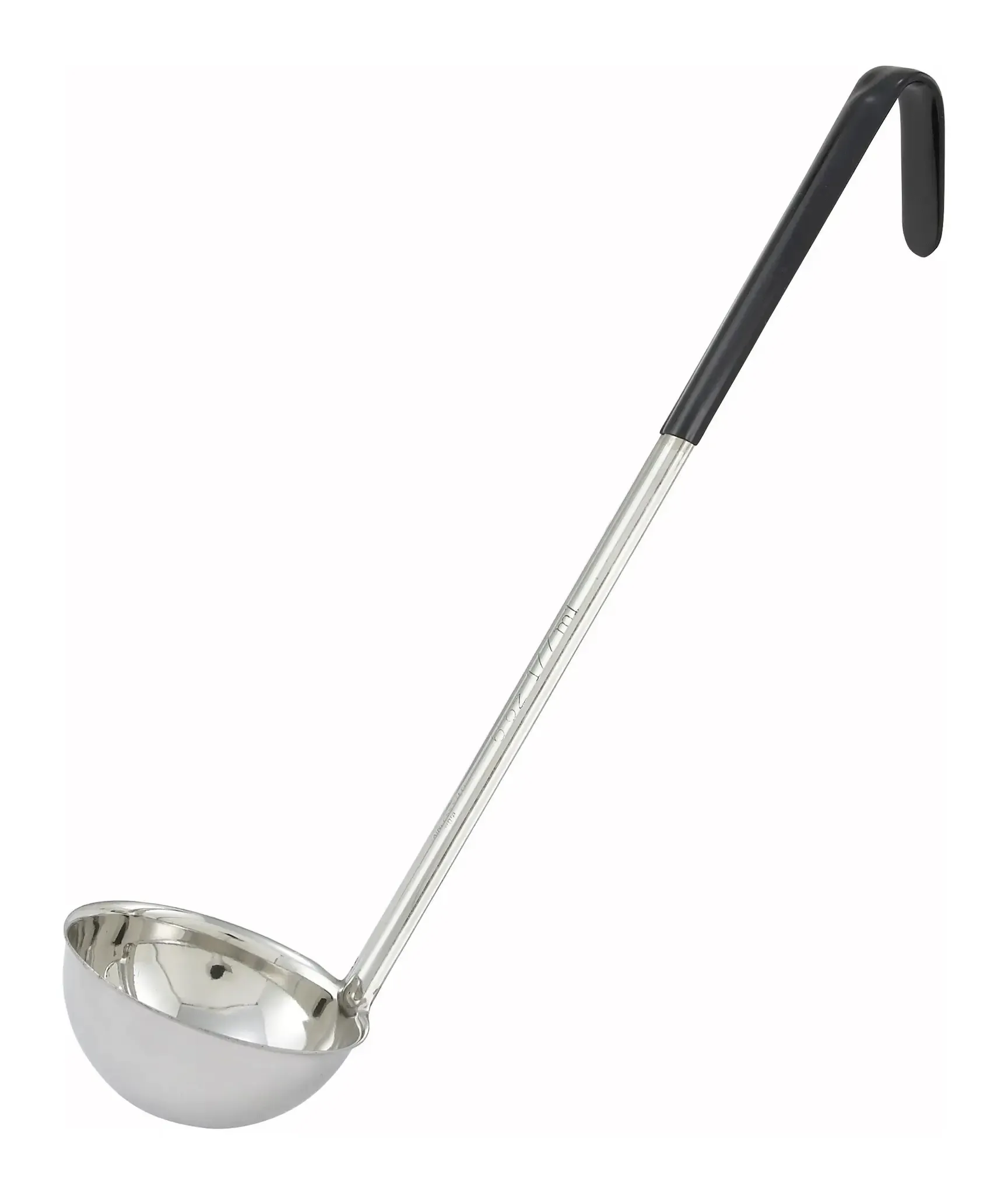Crafted for the discerning chef with an eye for precision and quality, the Winco Color-Coded Ladle is an essential tool for any professional kitchen. This 6 oz. ladle, model LDC-6, is designed to meet the rigorous demands of a bustling restaurant environment. The Winco Color-Coded Ladle features a one-piece stainless steel construction, ensuring durability and longevity. Its 15-1/2 inch handle provides ample reach, making it perfect for serving soups, sauces, and stews from deep pots without compromising on control or comfort. The black color-coding not only adds a sleek, professional look but also helps in quick identification, reducing the risk of cross-contamination and maintaining high hygiene standards. This ladle's ergonomic design ensures a comfortable grip, allowing chefs to serve with precision and ease. The seamless construction means there are no crevices for food particles to hide, making it exceptionally easy to clean and maintain. Whether you're portioning out consistent servings or adding the finishing touch to a dish, the Winco Color-Coded Ladle is the reliable choice for any culinary task. Incorporating the Winco Color-Coded Ladle into your kitchen arsenal means investing in a tool that combines functionality, safety, and style. Elevate your kitchen's efficiency and maintain the highest standards of food safety with this indispensable utensil.