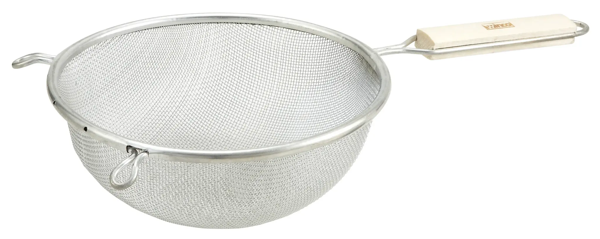 Innovatively designed using top-quality materials, the Winco MST-8S Strainer is an essential tool for any professional kitchen. With an 8-inch bowl diameter and a 14-1/4 inch overall length, this strainer is perfect for a variety of tasks, from sifting flour to straining pasta or vegetables. The medium tinned mesh ensures durability and effective straining, making it a reliable choice for busy restaurant environments. The Winco MST-8S Strainer features a single round mesh that provides optimal performance, allowing for efficient separation of liquids and solids. The medium mesh size strikes a perfect balance, making it versatile enough for different culinary applications. Whether you are preparing a delicate sauce or a hearty soup, this strainer will help you achieve the desired consistency with ease. One of the standout features of the Winco MST-8S Strainer is its wooden handle. Not only does it offer a comfortable grip, but it also remains cool to the touch, ensuring safety and ease of use during prolonged periods of cooking. The handle's length provides excellent leverage, making it easier to handle large quantities of food without straining your wrist. Incorporating the Winco MST-8S Strainer into your kitchen arsenal will enhance your efficiency and precision in food preparation. Its robust construction and thoughtful design make it a valuable addition to any restaurant, ensuring that you can deliver high-quality dishes consistently. Choose the Winco MST-8S Strainer for a reliable, durable, and versatile kitchen tool that meets the demands of a professional setting.