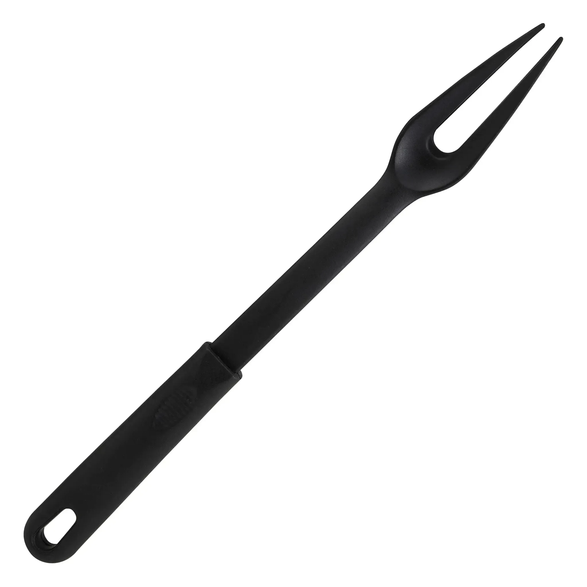 Crafted with two sturdy prongs, this fork is ideal for handling large cuts of meat, turning roasts, or even serving dishes with precision. The heat-resistant construction can withstand temperatures up to 410°F (210°C), ensuring it remains durable and reliable even in the hottest kitchen conditions. Made from BPA-free nylon, the fork is not only safe for food contact but also easy to clean and maintain.