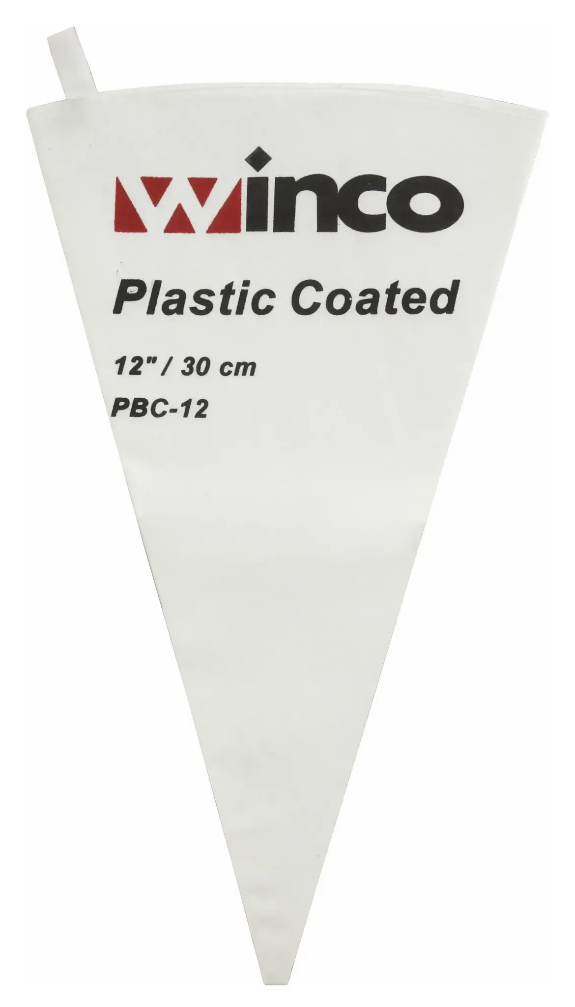 Enhance the kitchen's capabilities with the Winco Pastry Bag. Designed specifically for professional use, this pastry bag features a durable cotton exterior that ensures a comfortable grip and superior control, making it an essential tool for any restaurant's pastry chef. The inside of the bag is polyurethane coated, providing a smooth, non-stick surface that facilitates easy piping and quick cleanup. The Winco Pastry Bag is built to withstand the rigors of a busy kitchen environment. Its robust construction ensures longevity, even with frequent use. The polyurethane coating inside not only makes it easier to handle various fillings, from delicate creams to thick doughs, but also helps maintain hygiene by preventing residue buildup. Whether you're decorating cakes, filling pastries, or creating intricate designs, the Winco Pastry Bag offers the precision and reliability needed to achieve professional results. Its ergonomic design reduces hand fatigue, allowing chefs to work efficiently during peak hours. While the model number PBC-12 may be referenced for inventory or ordering purposes, the standout features of this pastry bag lie in its thoughtful design and high-quality materials. Elevate your kitchen's pastry capabilities with the Winco Pastry Bag, a tool that combines functionality, durability, and ease of use, ensuring your culinary creations are always top-notch. Incorporate the Winco Pastry Bag into your kitchen arsenal and experience the difference in performance and quality. This essential tool is a must-have for any restaurant aiming to deliver exquisite pastry presentations with ease and precision.